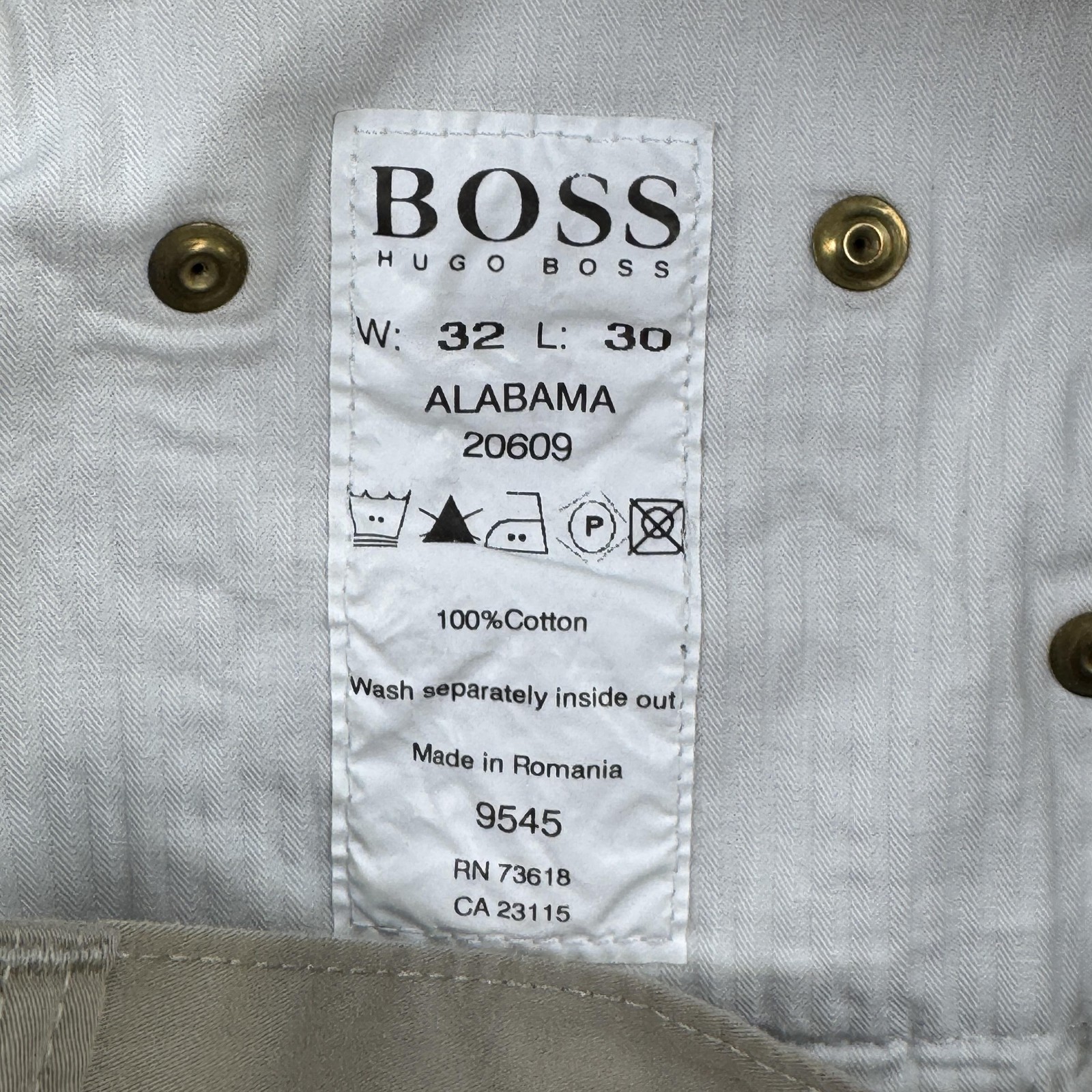 Hugo Boss Alabama Pants Mens 32x30 Beige Straight Leg Cotton Casual