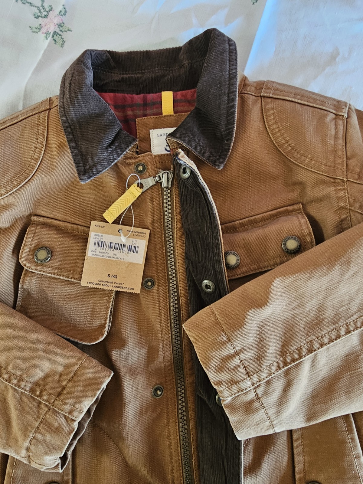 LANDS' END NEW Kids Size 4 Barn Jacket Brown, Lined With Extra Pocket