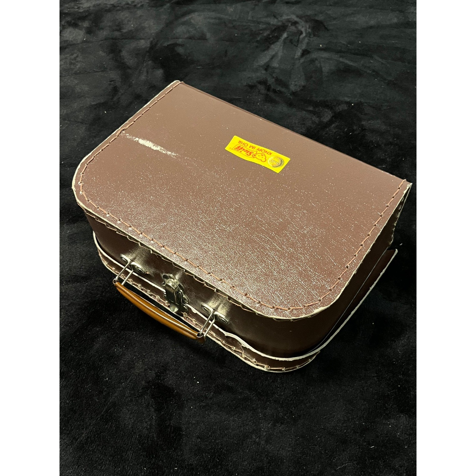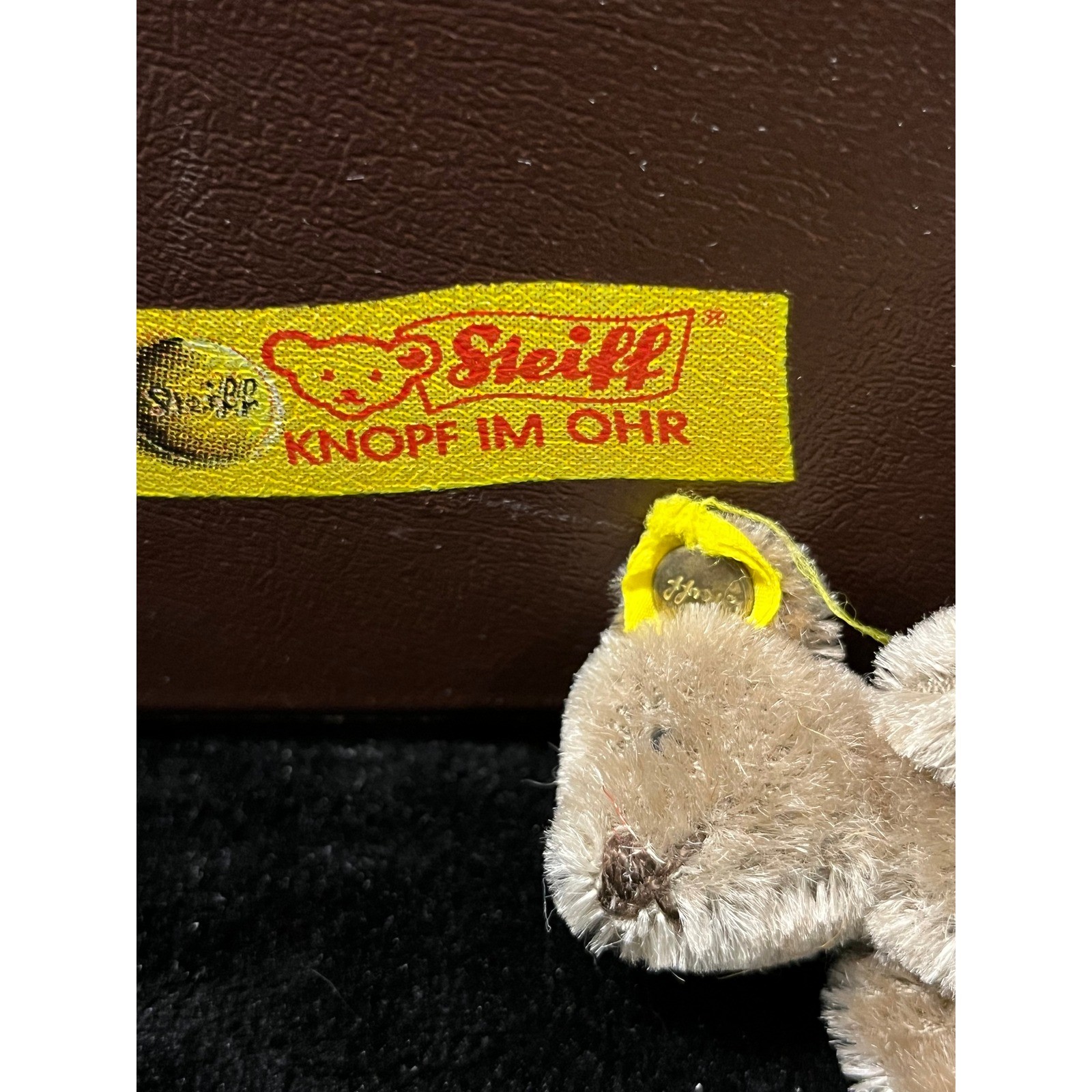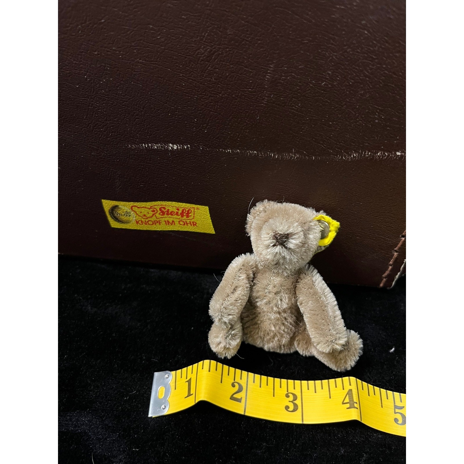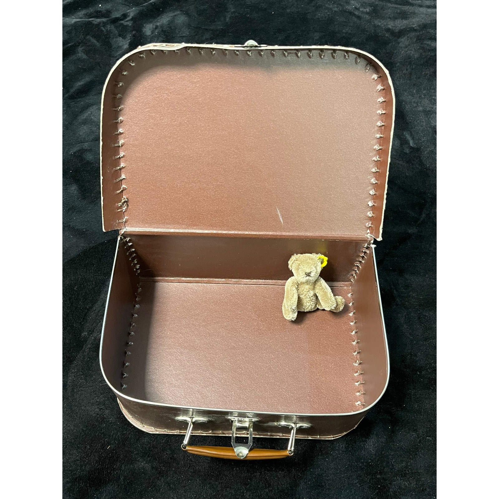 Steiff Miniature Teddy Bear with Vintage Brown Travel Suitcase Knopf Im Ohr