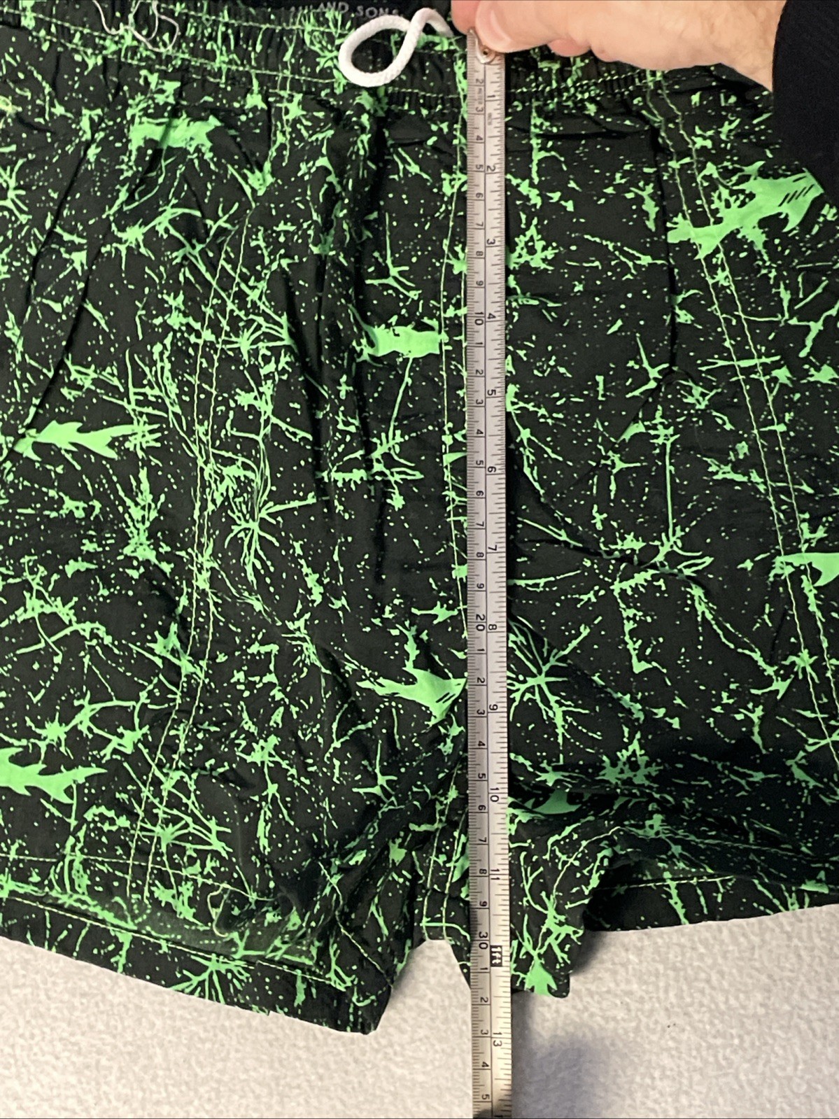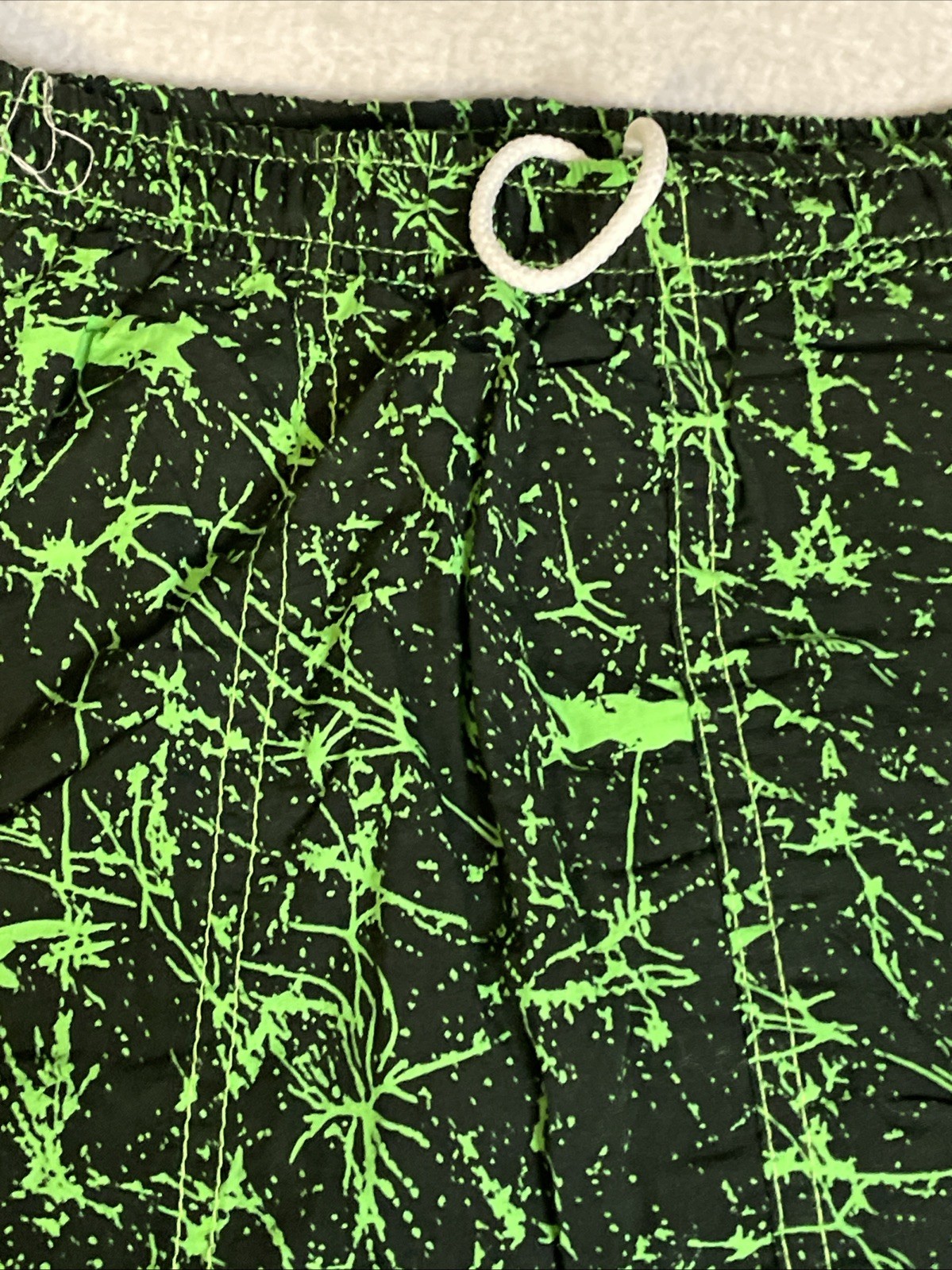 Vintage Maui Sons Mens Swim Shorts S Colorful Neon Green Splattered Shark Print