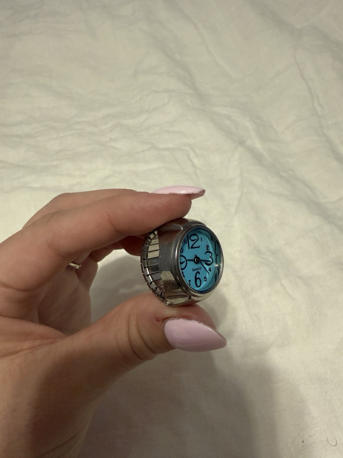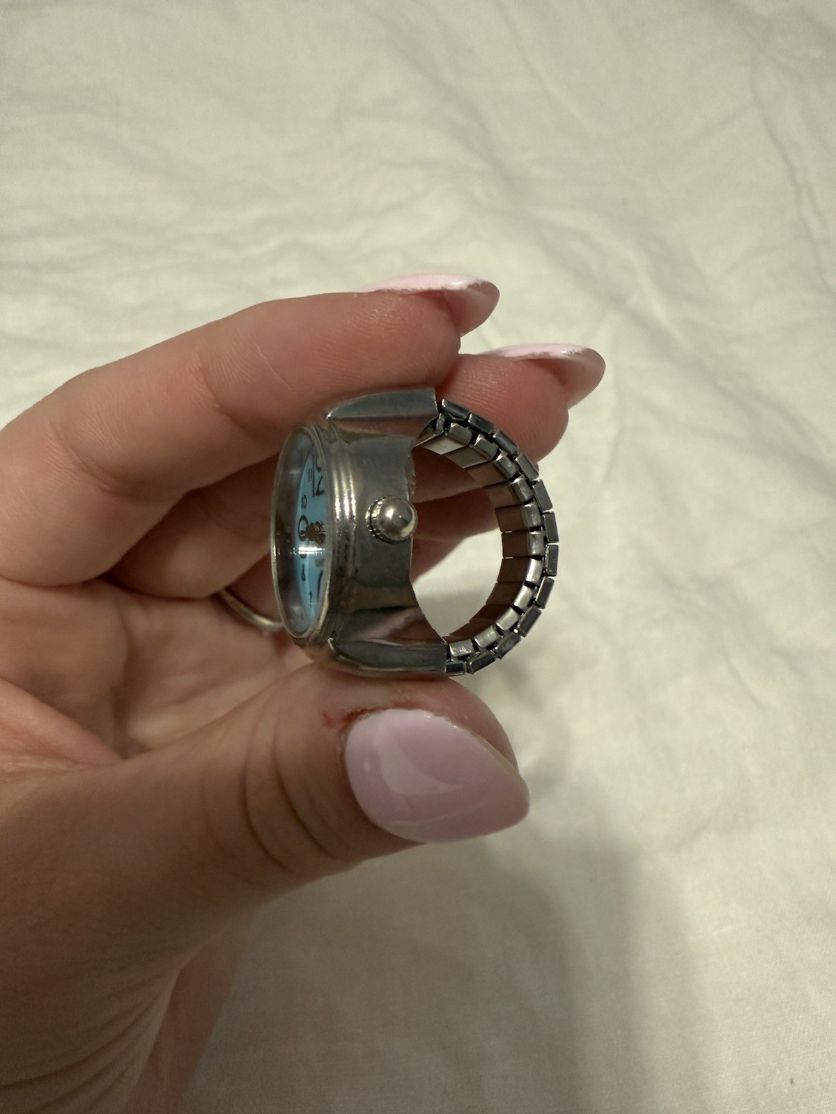 как выглядит Blue Dial Face Silver Analog Quartz Ring Watch Elastic Band фото