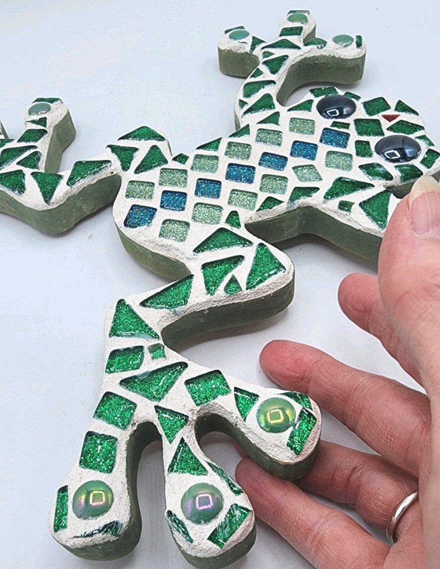 Mosaic Glass Tile Frog Wall Hanging 9.5 Irredescent Sparkling Glass Porch Art