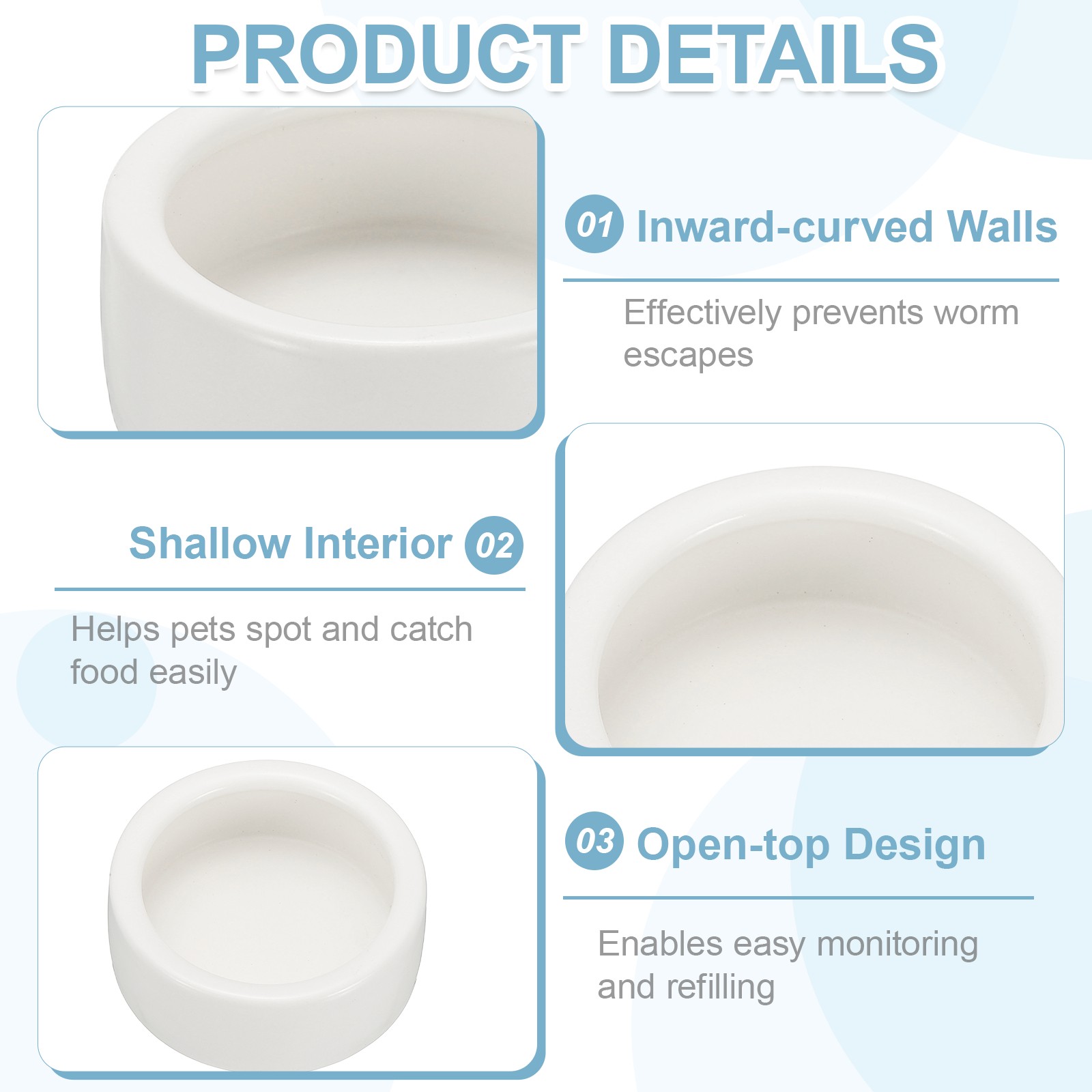 Reptile Food Bowl Worm Water Dish Ceramic Pet Bowl Small 2 White