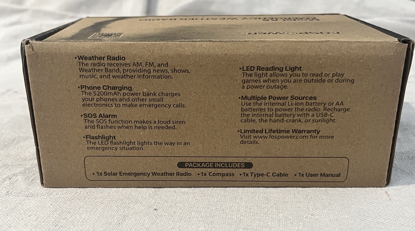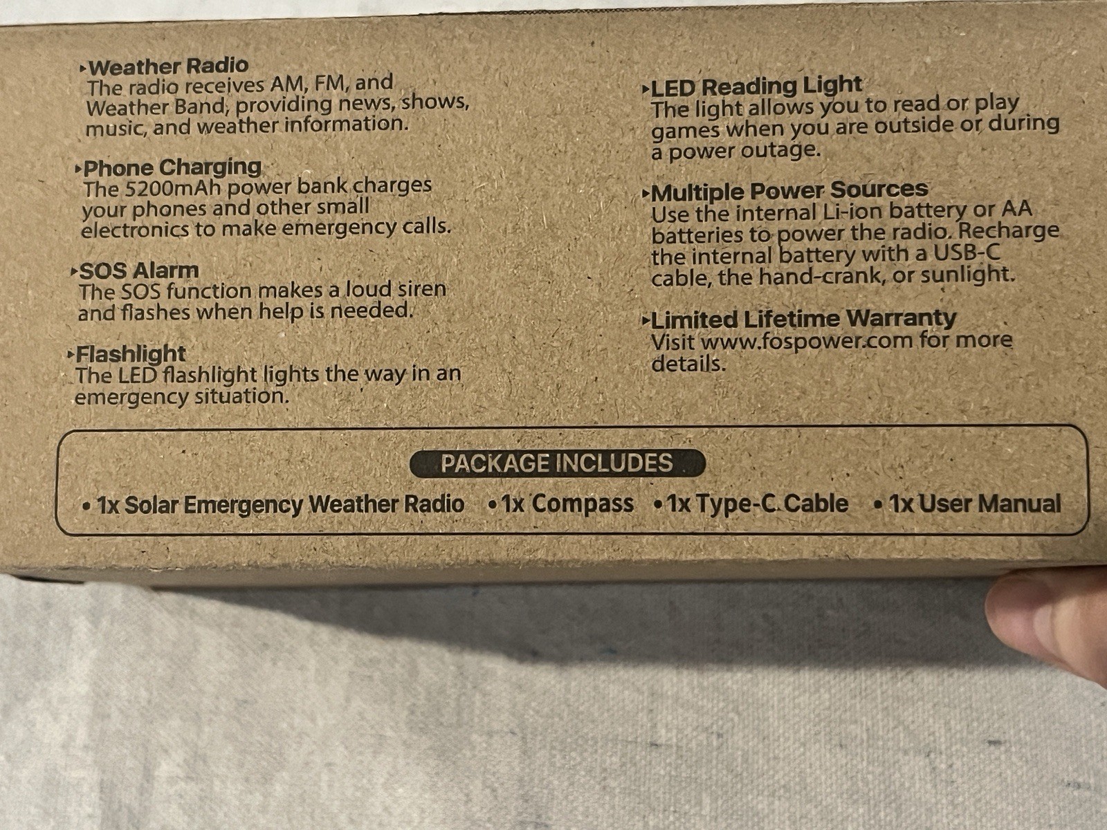 FosPower Emergency Weather Radio Model A6 NOAA/AM/FM with 19240mWh Port Po