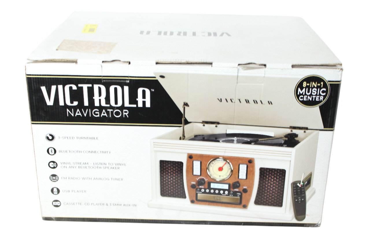 Victrola VTA-600B-WHT Navigator Bluetooth 8 in 1 Music Center - Free Shipping.