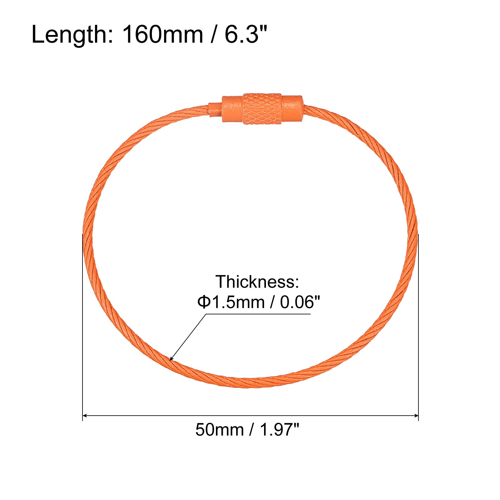 • Cable Key Rings 160mm Wire Keychain Twist Loops Orange 12Pcs