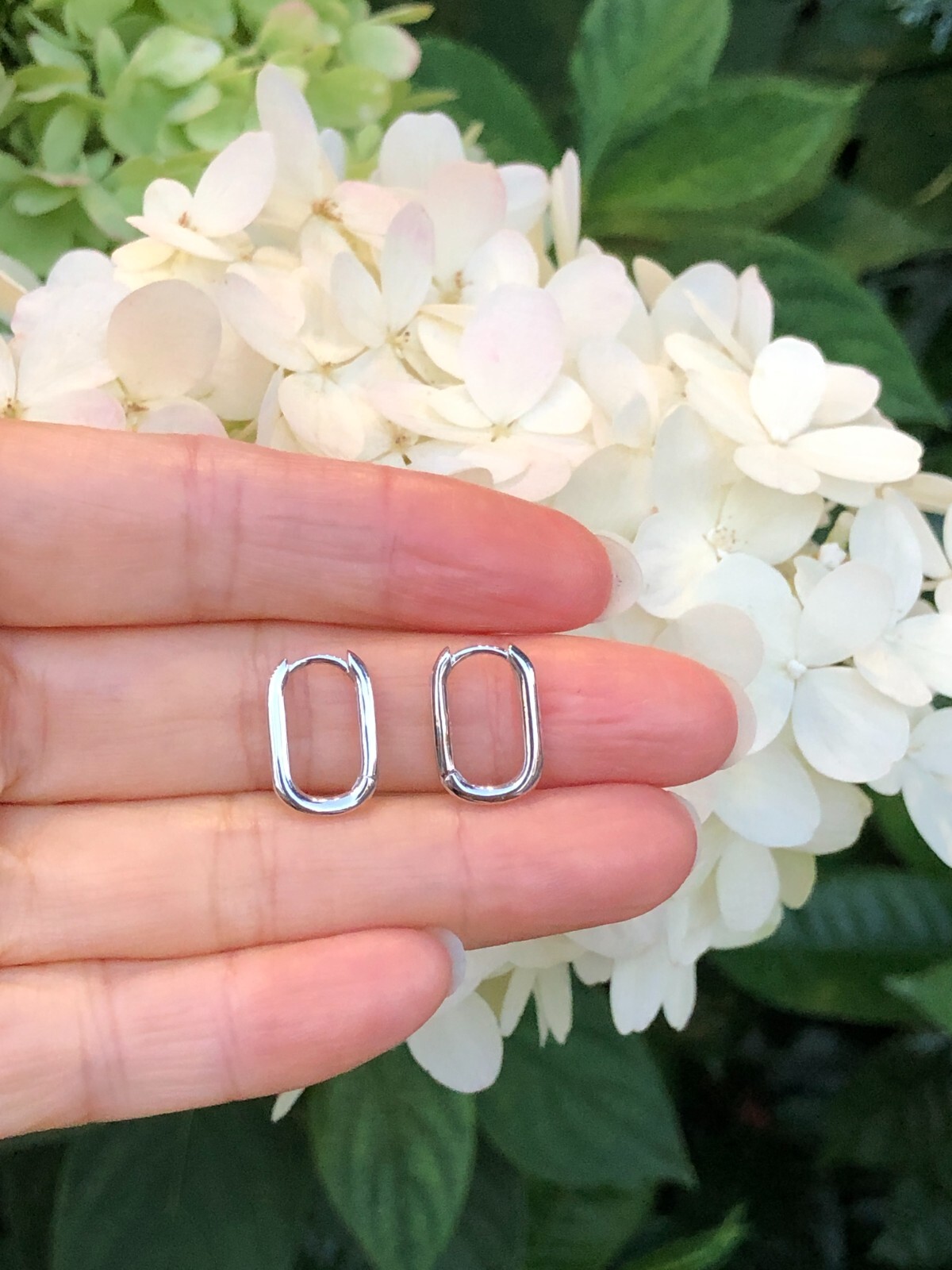 925 Sterling Silver Rectangle Hoop Earrings Small Plain Hoops 14.5mm/12mm x1.5mm