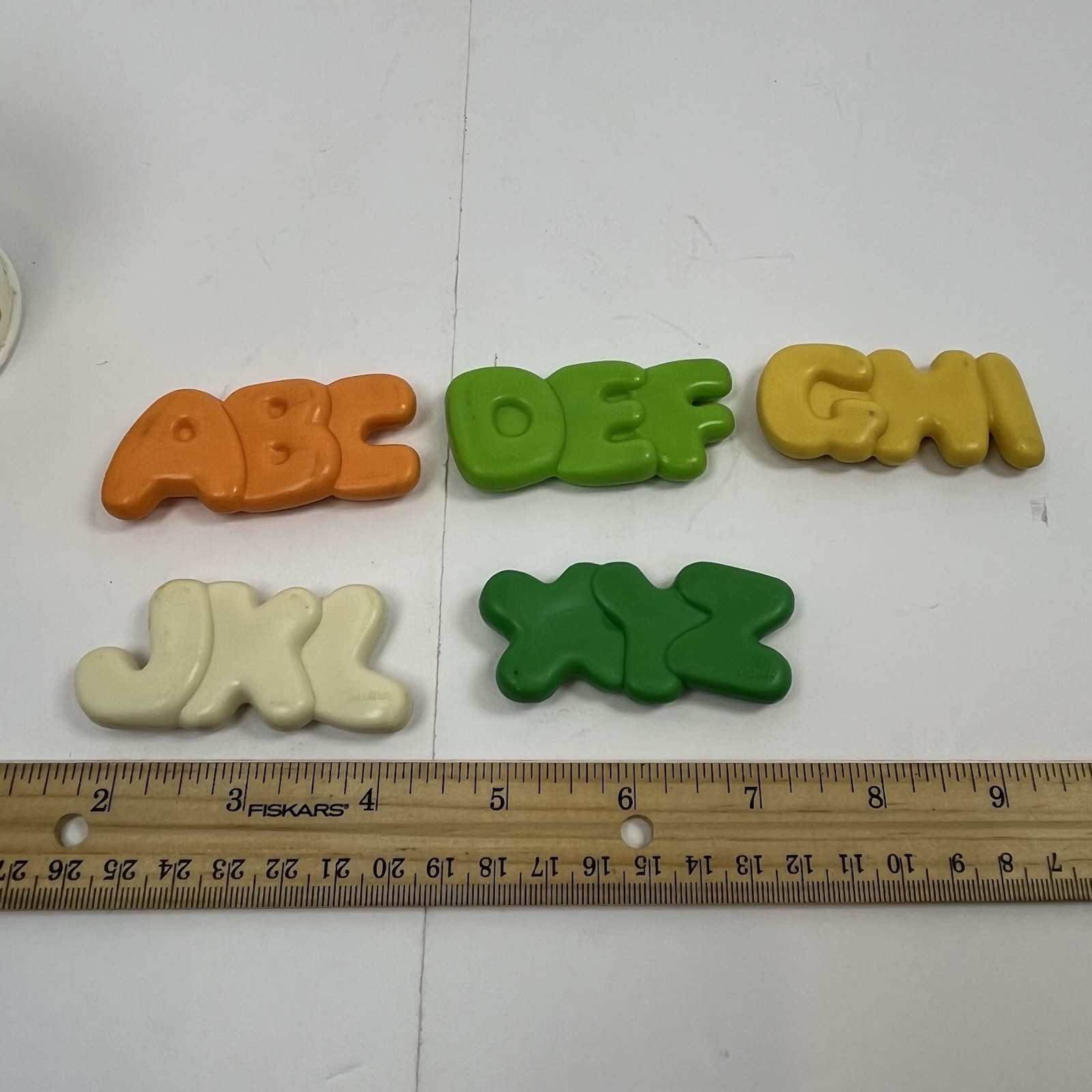 Vintage 1987 Fisher-Price Alphabet Soup Can fun with food set Made In USA