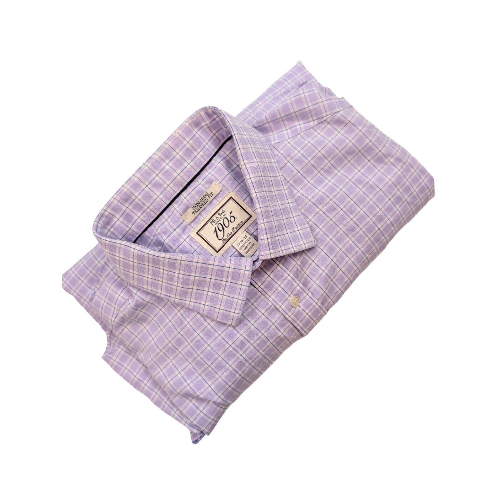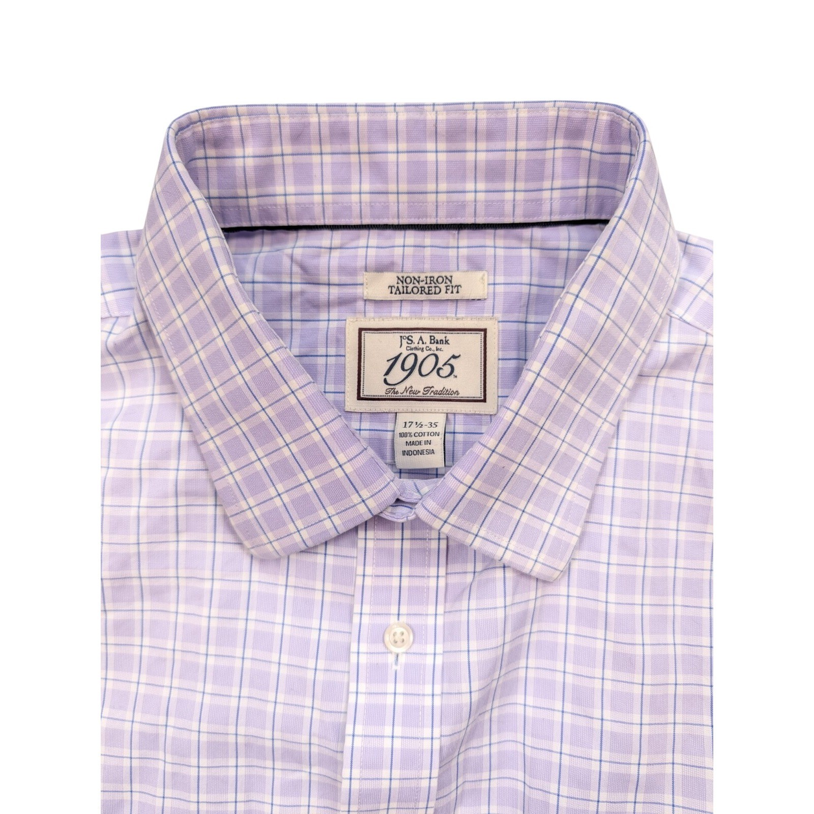 Jos A Bank Traveler 1905 Purple Check Button L/S Dress Shirt Men's Size 17.5/35