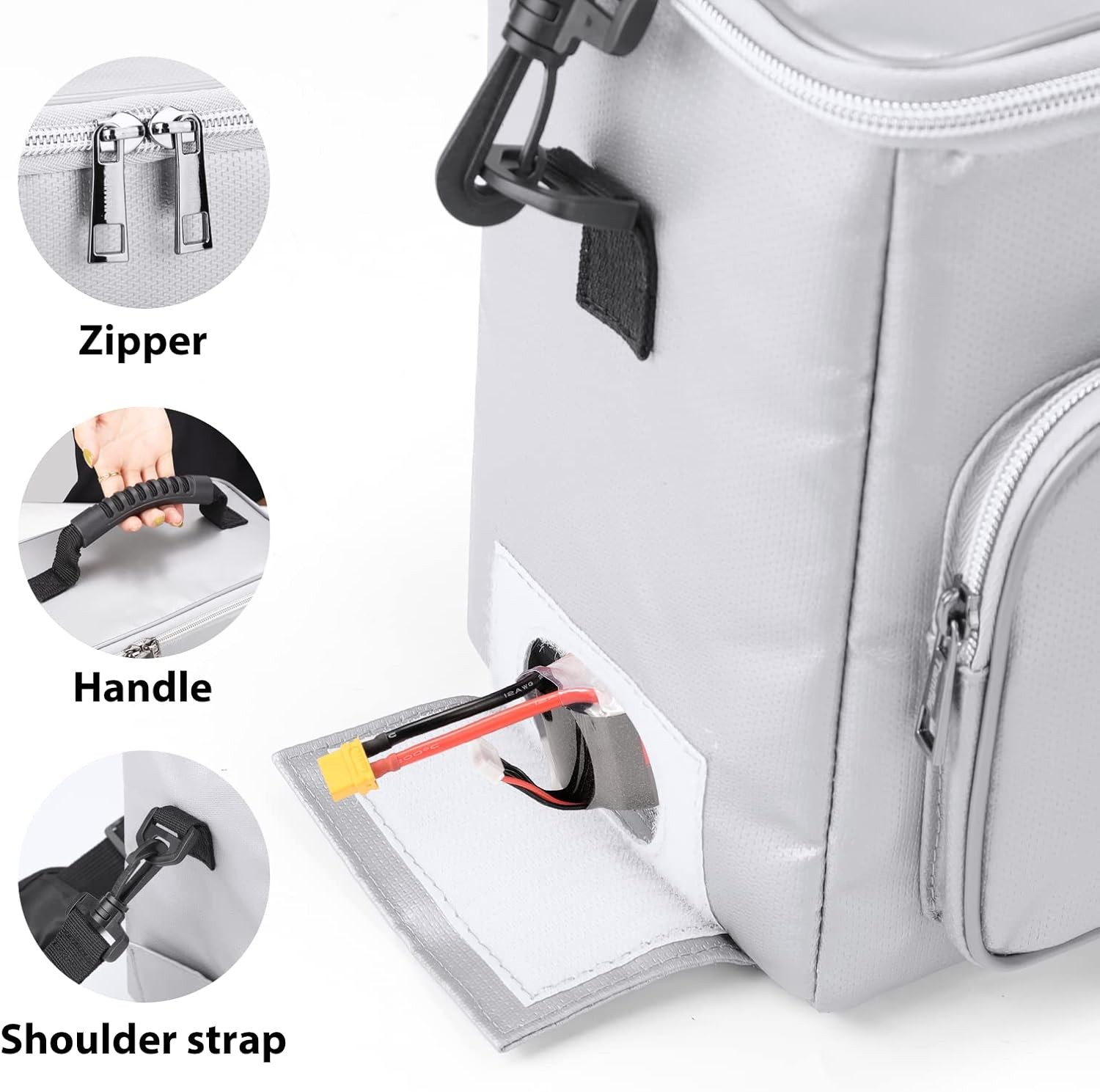 Fireproof Lipo Battery Bag with 4200 F Heat Insulated, Ebike Lipo Bag with Pocke