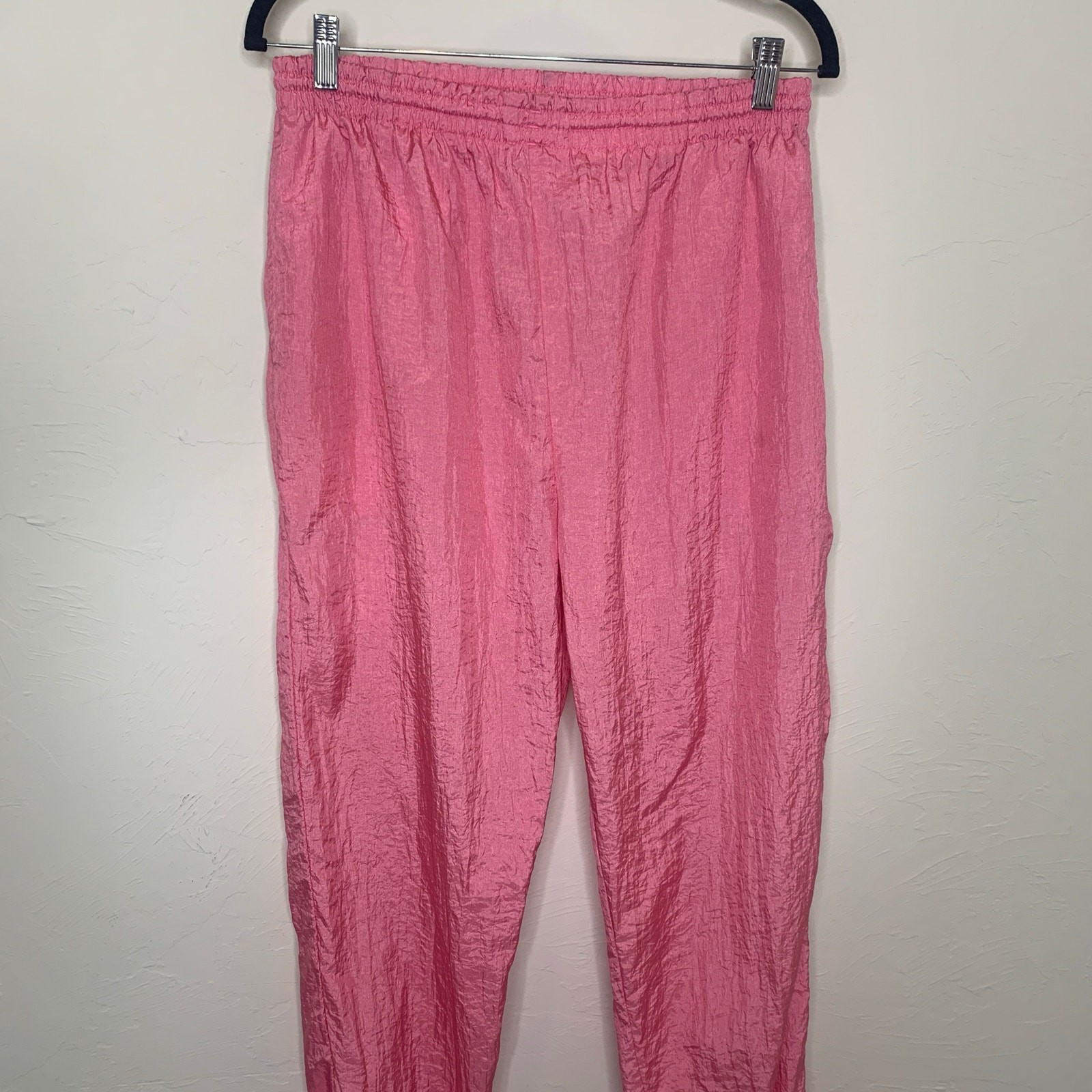 Vintage 90s Pink Parachute Track Pants 90s Sz Large Nylon Joggers