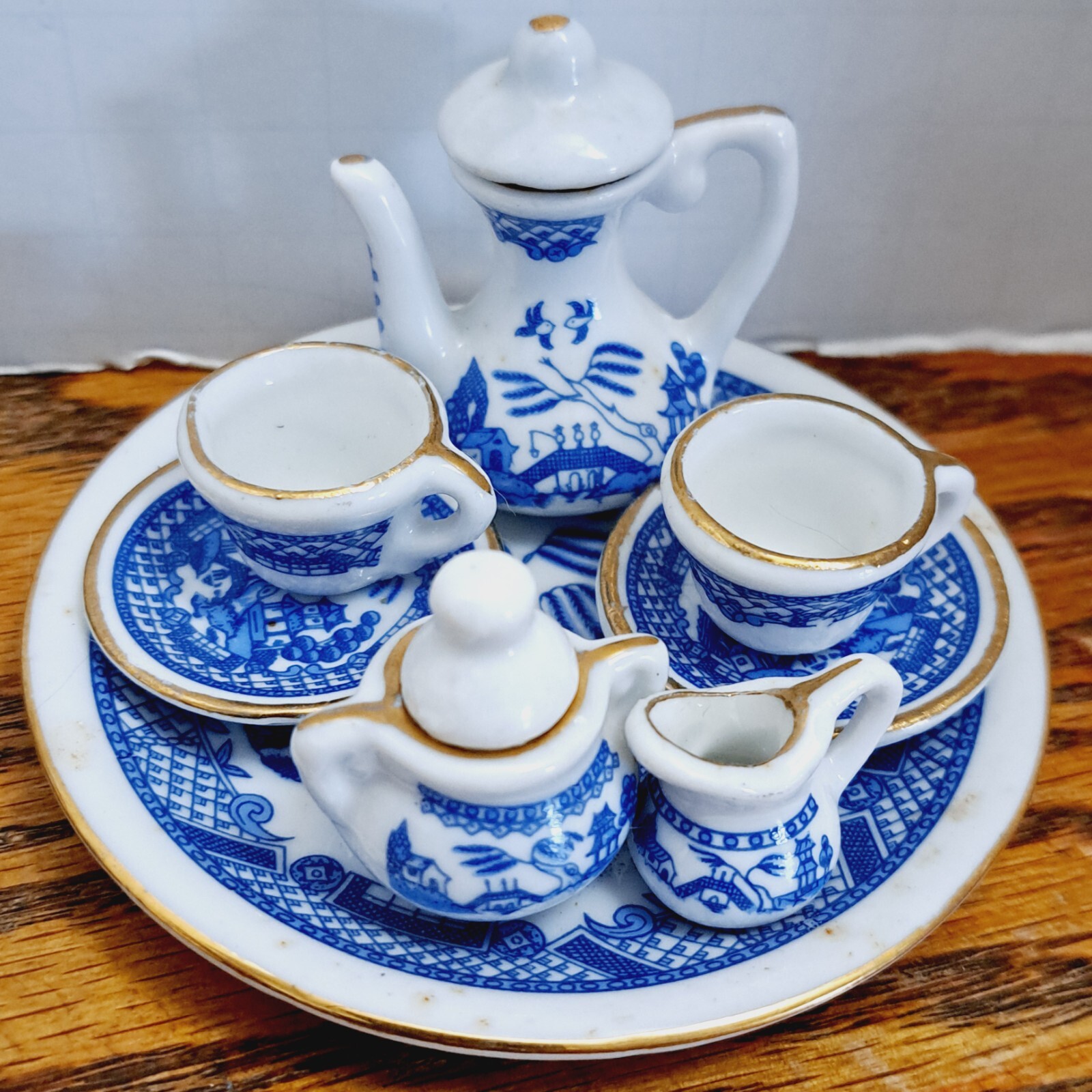 Miniature Blue Willow Tea Sets Doll House Size 2 Sets