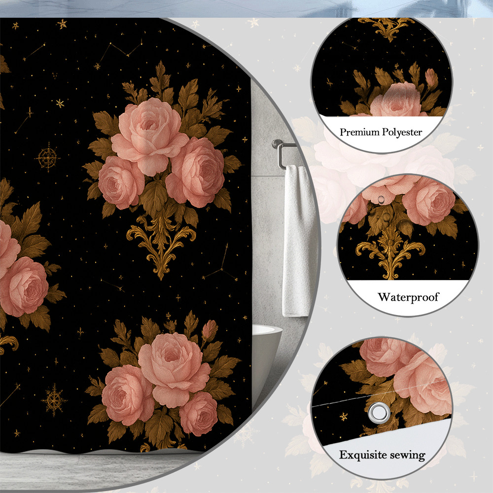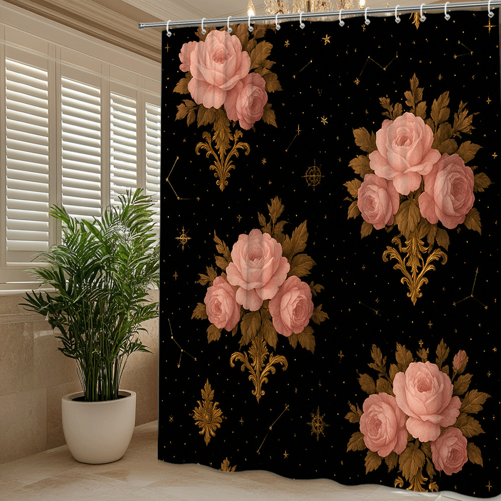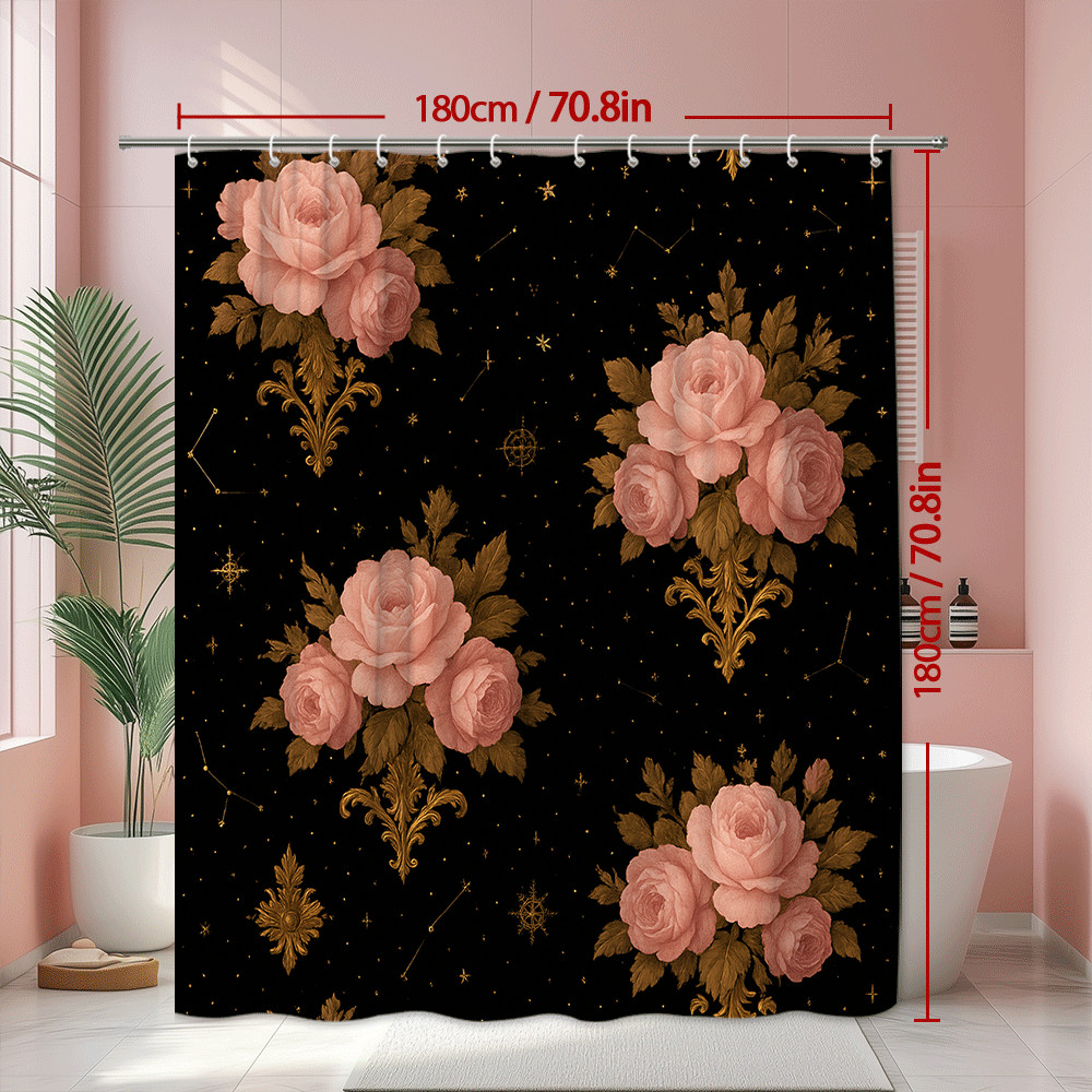 как выглядит Floral Pink Rose Shower Curtain on Black Background фото