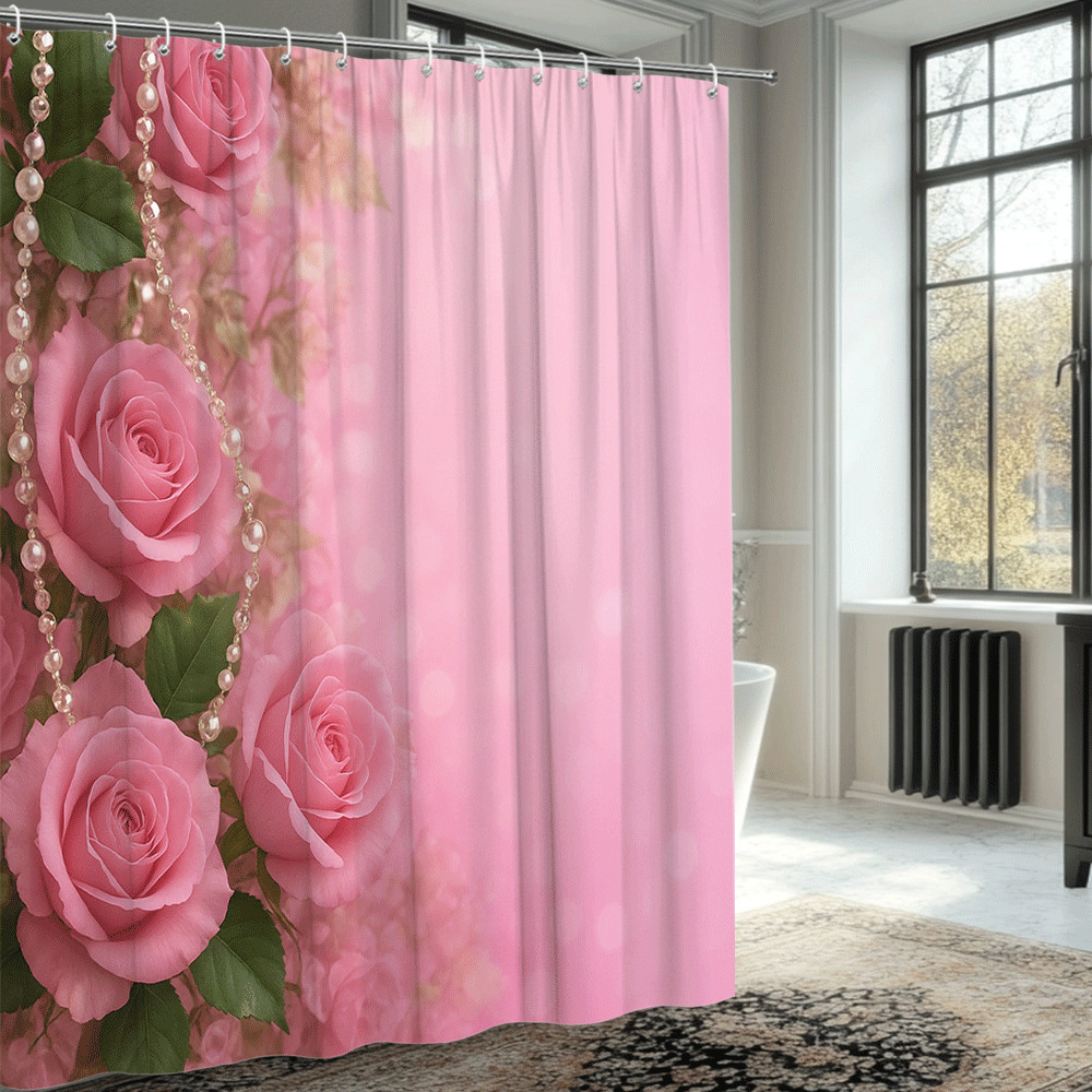 Pink Rose Shower Curtain with Pearls and Soft Floral Design