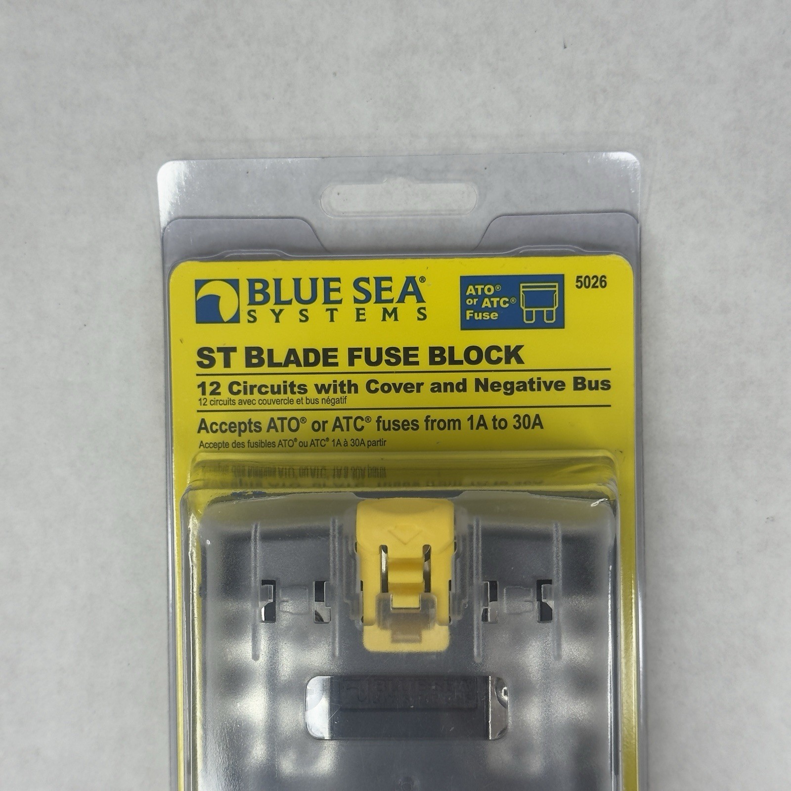 Blue Sea Systems ST Blade Fuse Block 12 Circuits w Negative Bus/Cover 5026