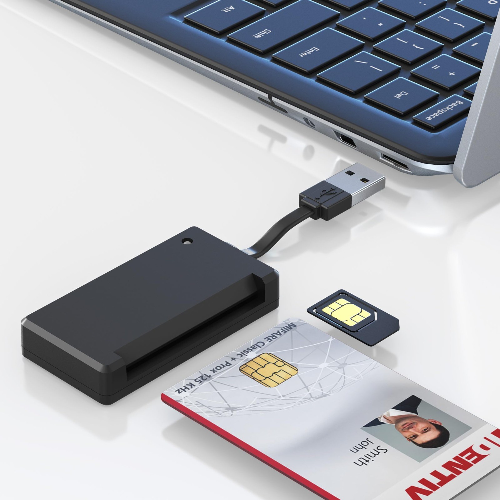 2-in-1 SIM Card Adapter CAC Reader for Smart Cards, USB Plug Play for PC/Lap