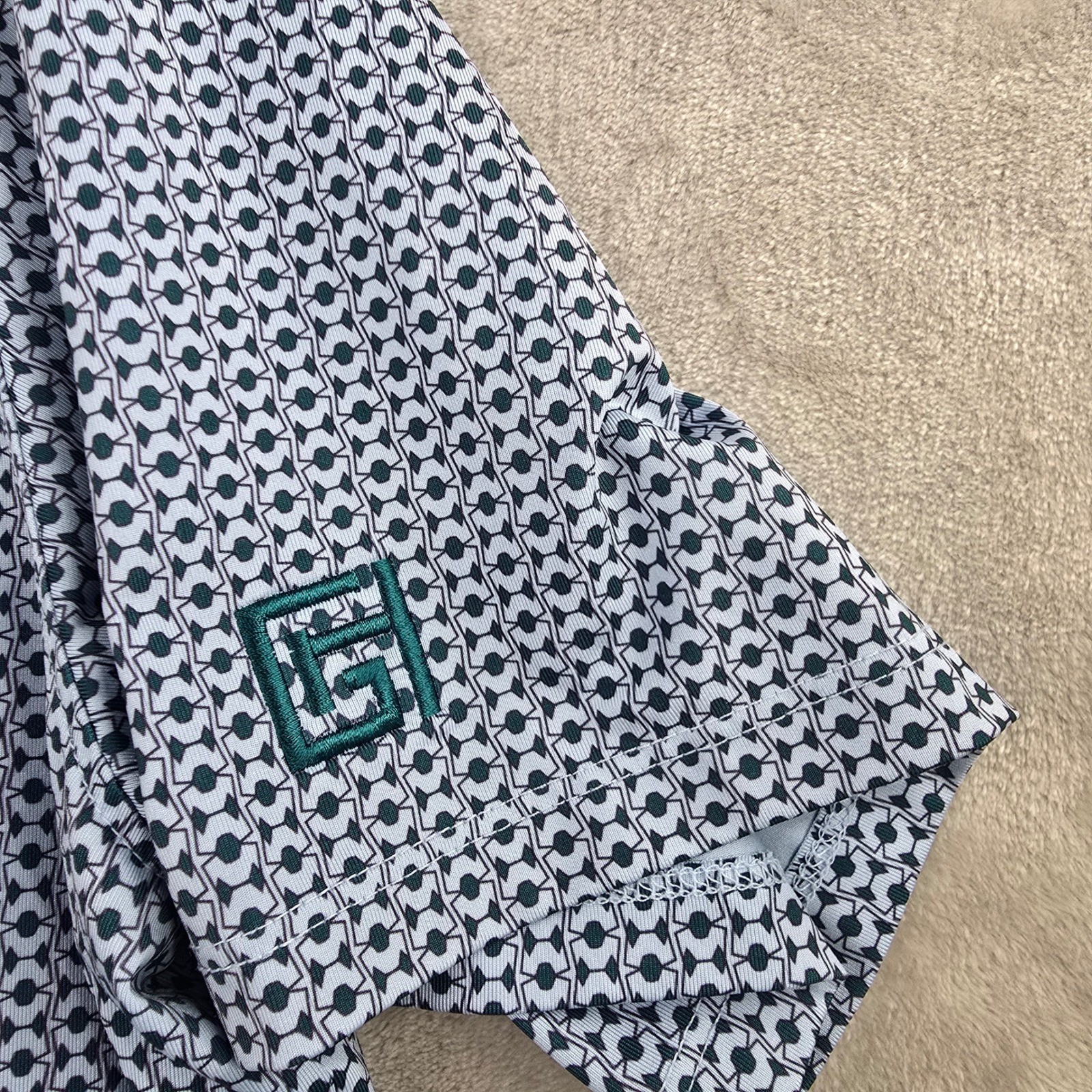 как выглядит Greyson Mens Polo Shirt Large Blue Geometric Print Short Sleeve Golf Performance фото
