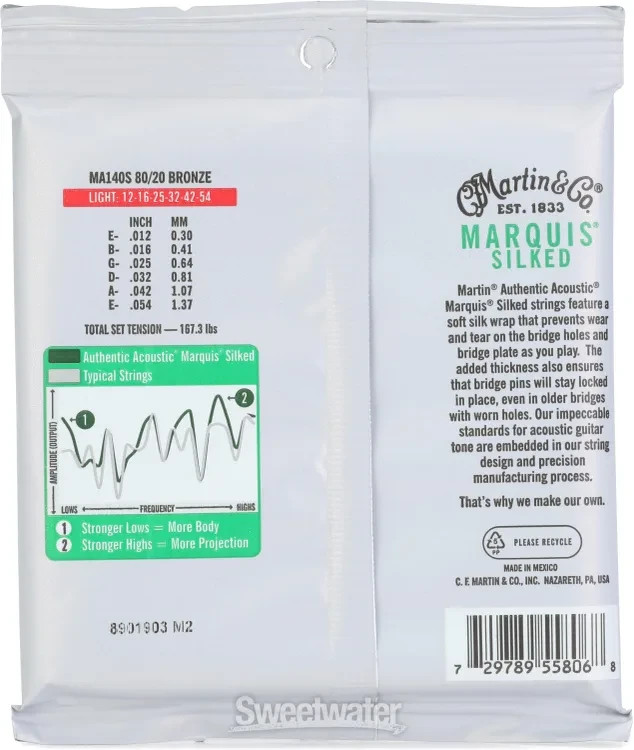 как выглядит MARTIN MARQUIS ACOUSTIC SILKED 80/20 BRONZE GUITAR STRING SET LIGHT MA140S фото