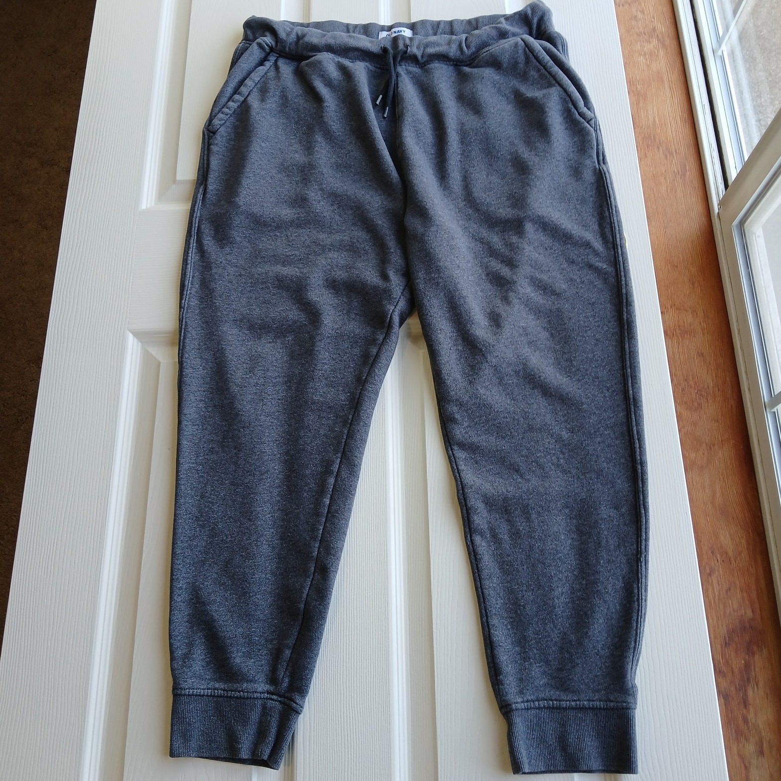 как выглядит Old Navy Fleece Jogger Sweatpants XL charcoal grey elastic drawstring pockets фото