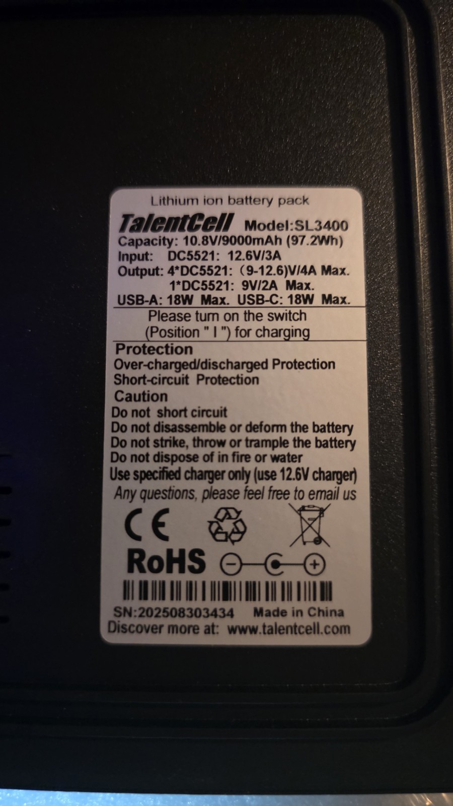 TalentCell SL3400 Mini UPS 12V Battery Backup 97.2Wh 27000mAh Router Modem Power