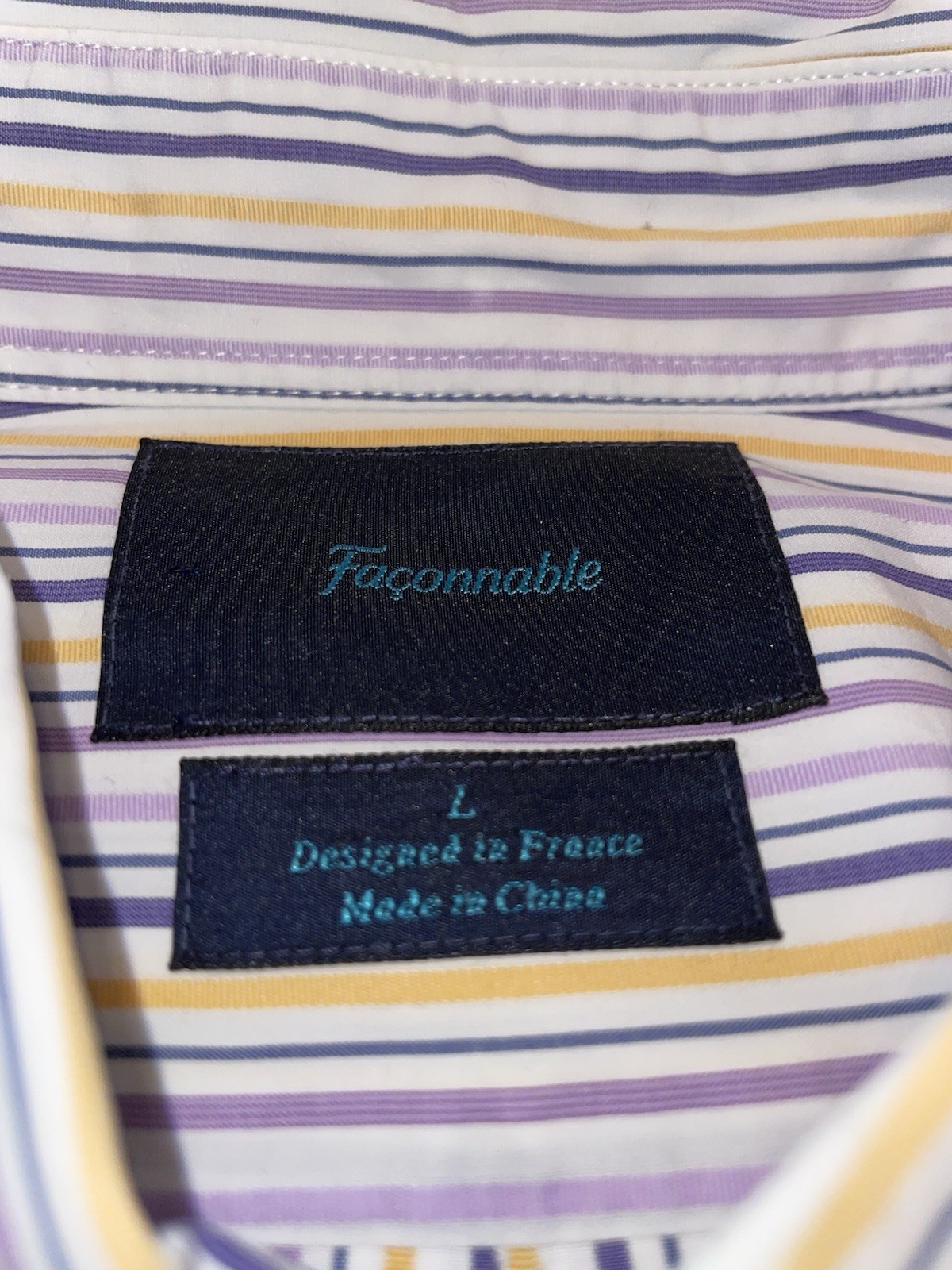 Faconnable Purple Stripe Dress Shirt Mens L LongSleeve Casual ButtonDown Preppy