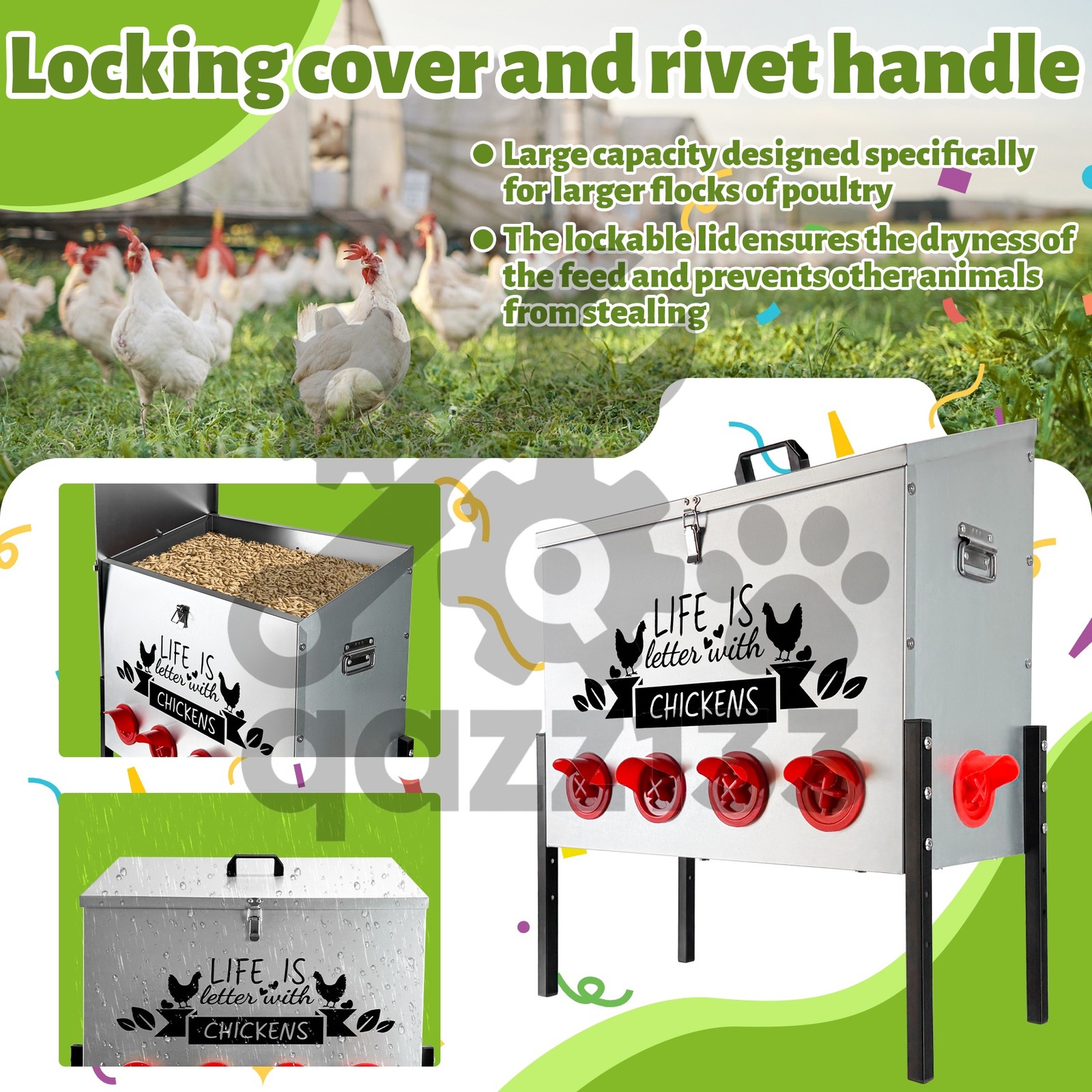 1PC 95lb Extra-Large Galvanized Metal Chicken Feeder with 10 No-Waste Ports