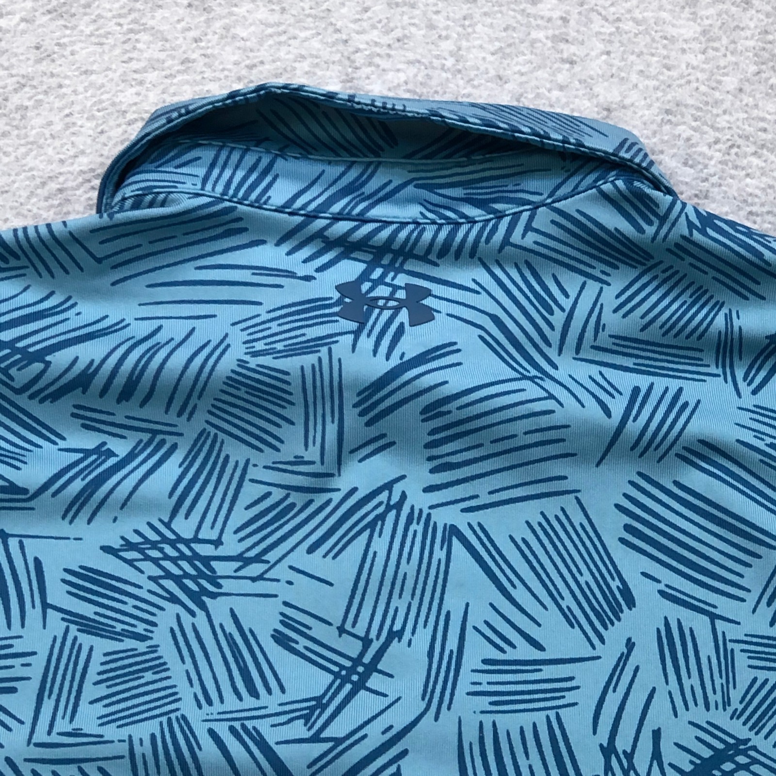 как выглядит Under Armour Polo Shirt Mens Medium Blue Graphic Golf Performance Playoff Logo фото