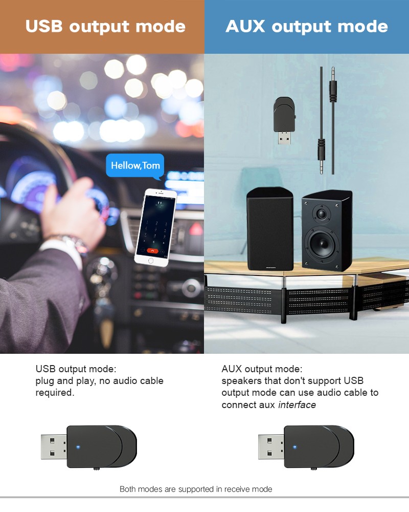 2in1 USB Bluetooth-compatible5.0 Audio Transmitter Receiver Computer TV Adapter