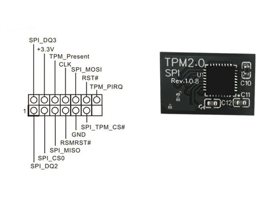TPM 2.0 Security Module Board For ASROCK 14 PIN SPI Motherboard For Win 11