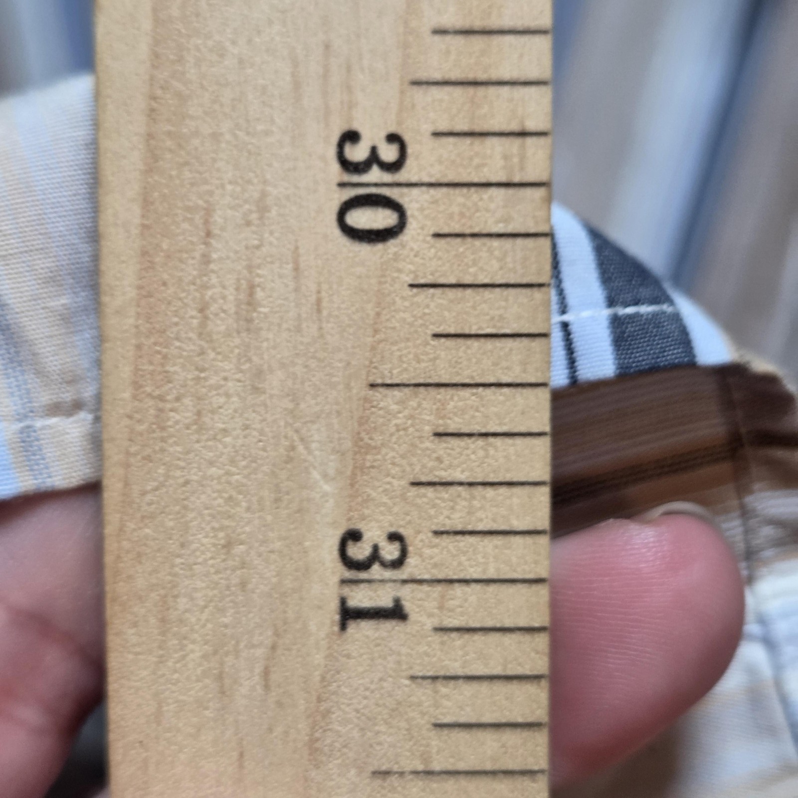 как выглядит Tailorbyrd Dress Shirt Mens Medium Blue Tan Stripe 100 Cotton Long Sleeve фото