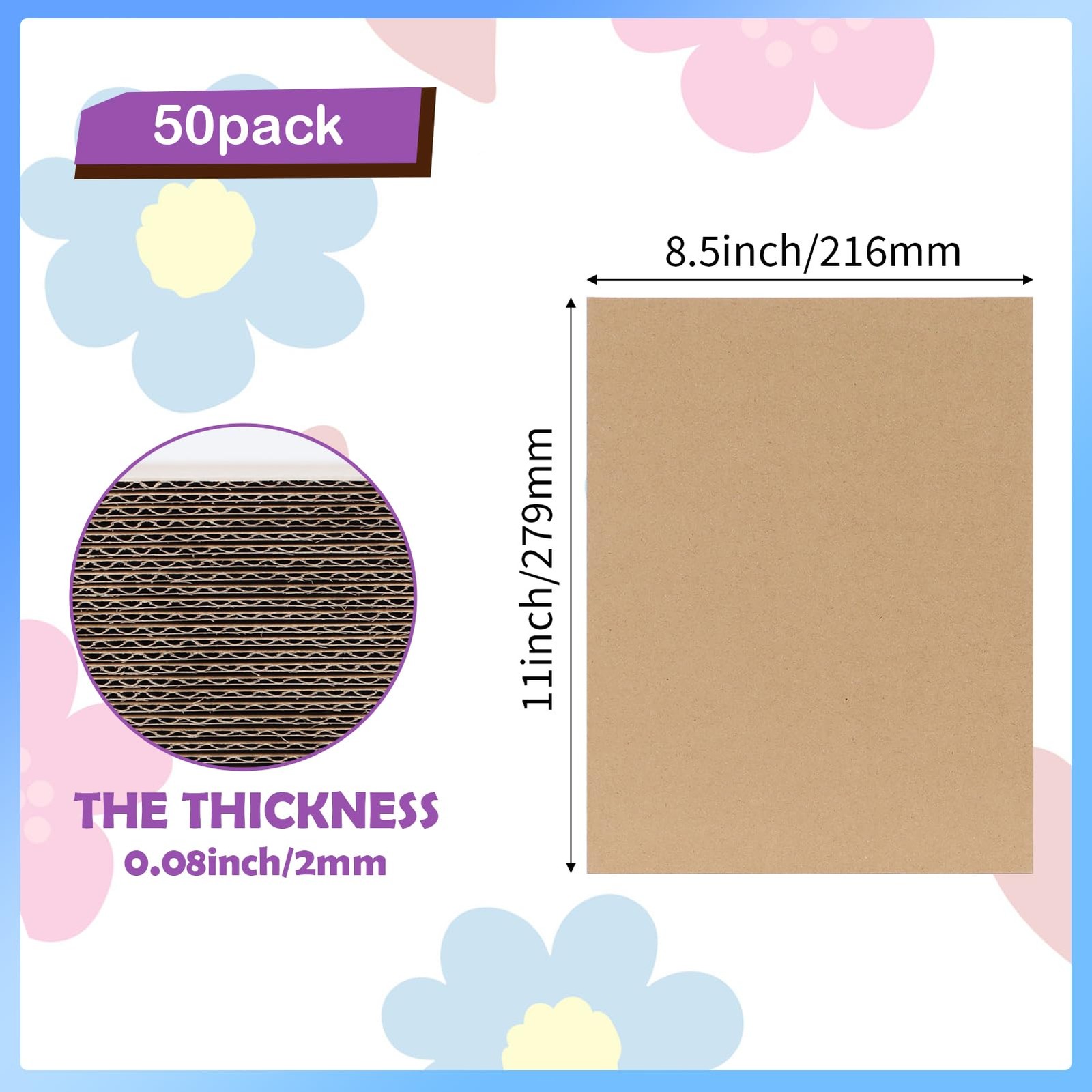 50 Pack 8.5x11 Corrugated Cardboard Sheets, Flat Cardboard Inserts for Shippi...