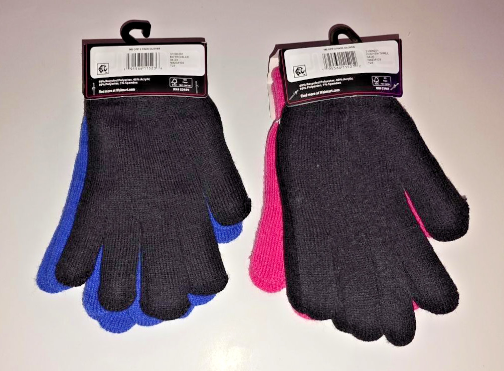 как выглядит 4 pairs Gloves 2 Black, 1 Pink, 1 Blue, One Size Fits Most- Stretchy- Brand New фото