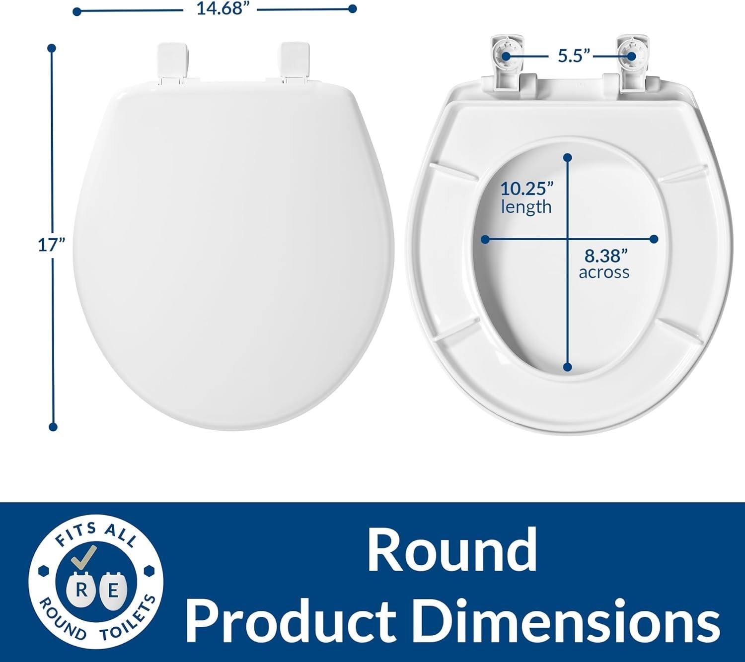 730SLEC White Slow Close Toilet Seat, Easy Clean Durable Plastic - Round 16.5