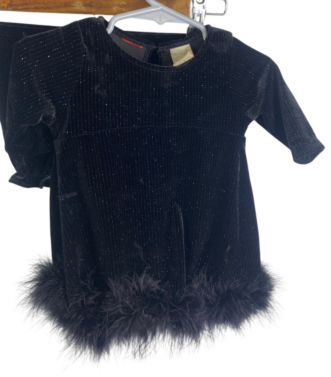 Vintage Girls Dance Costume Outfit Size 6 Black Velvet Glitter Top Bottoms 1960s