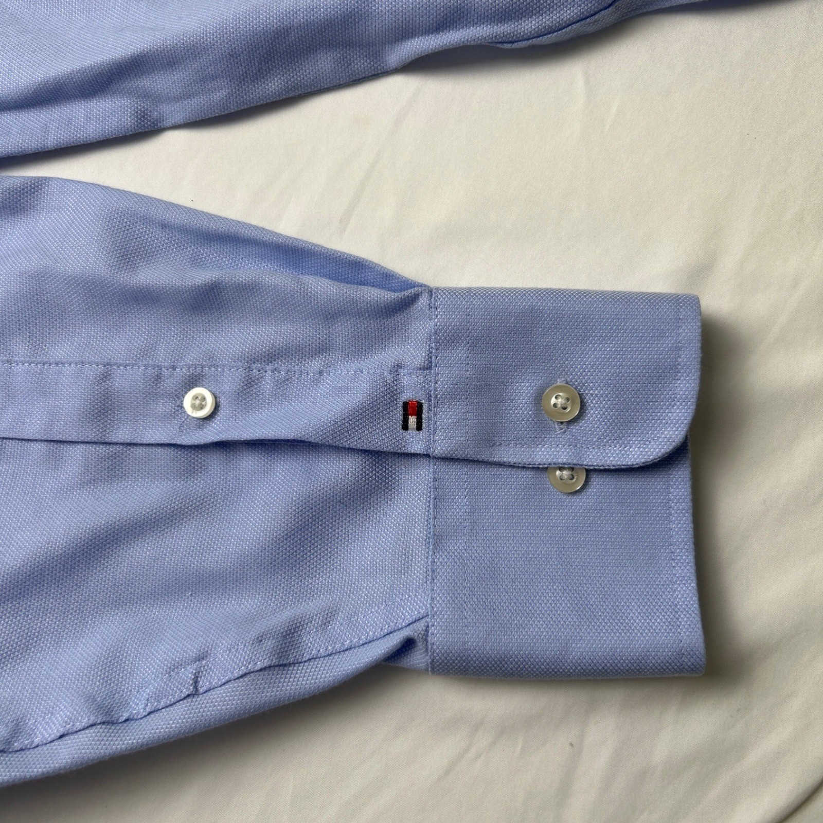 как выглядит Tommy Hilfiger Mens Dress Shirt Light Blue Size L Regular Fit Non-Iron Cotton фото