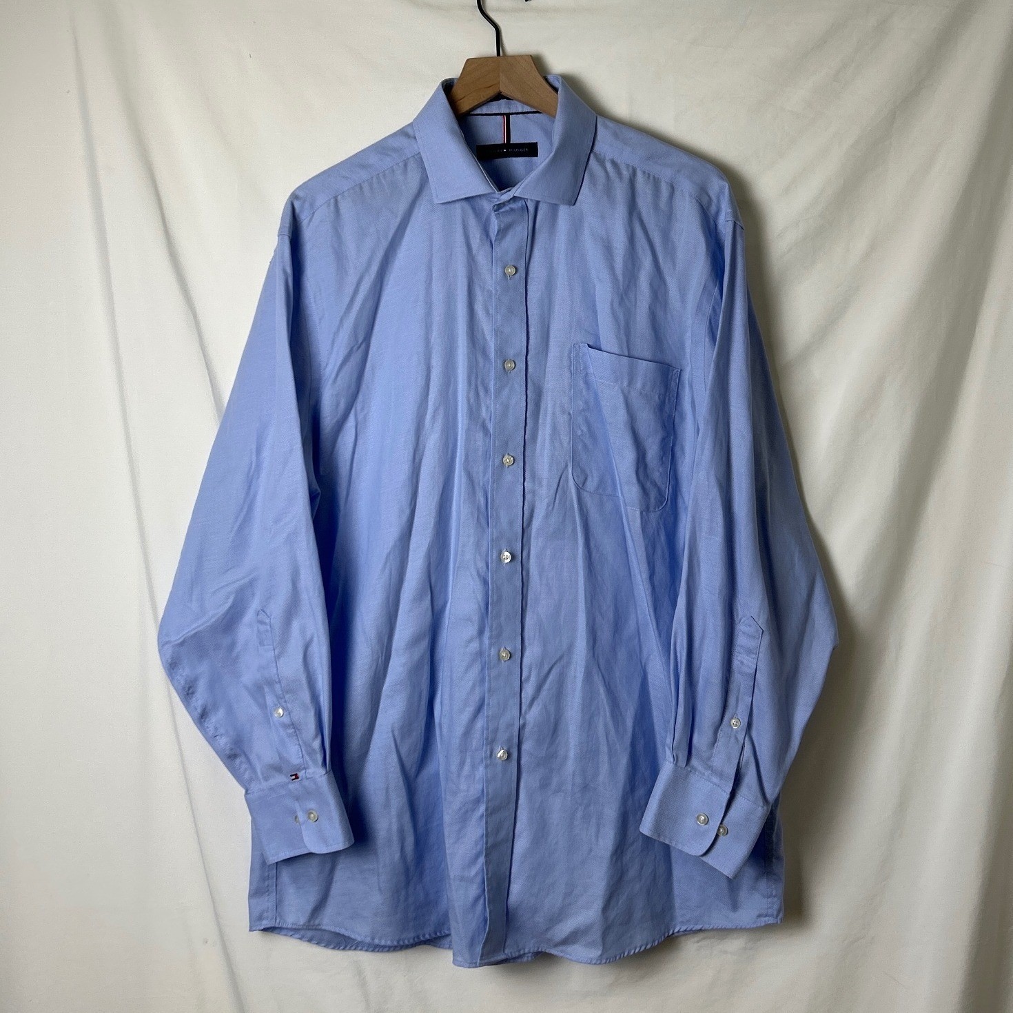 Tommy Hilfiger Mens Dress Shirt Light Blue Size L Regular Fit Non-Iron Cotton
