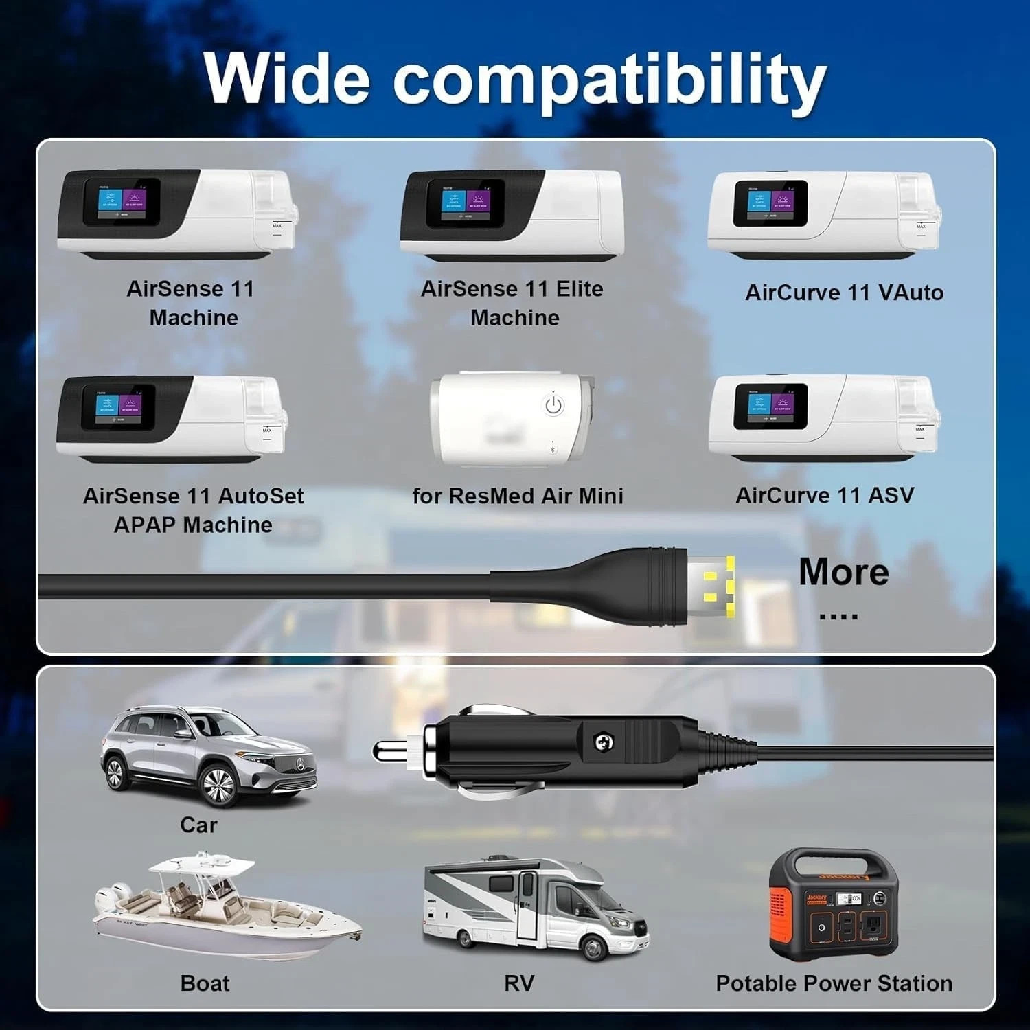 for ResMed AirSense 11 Power Cord, 12V-24V Car Charger, Supply Adapter Compatibi