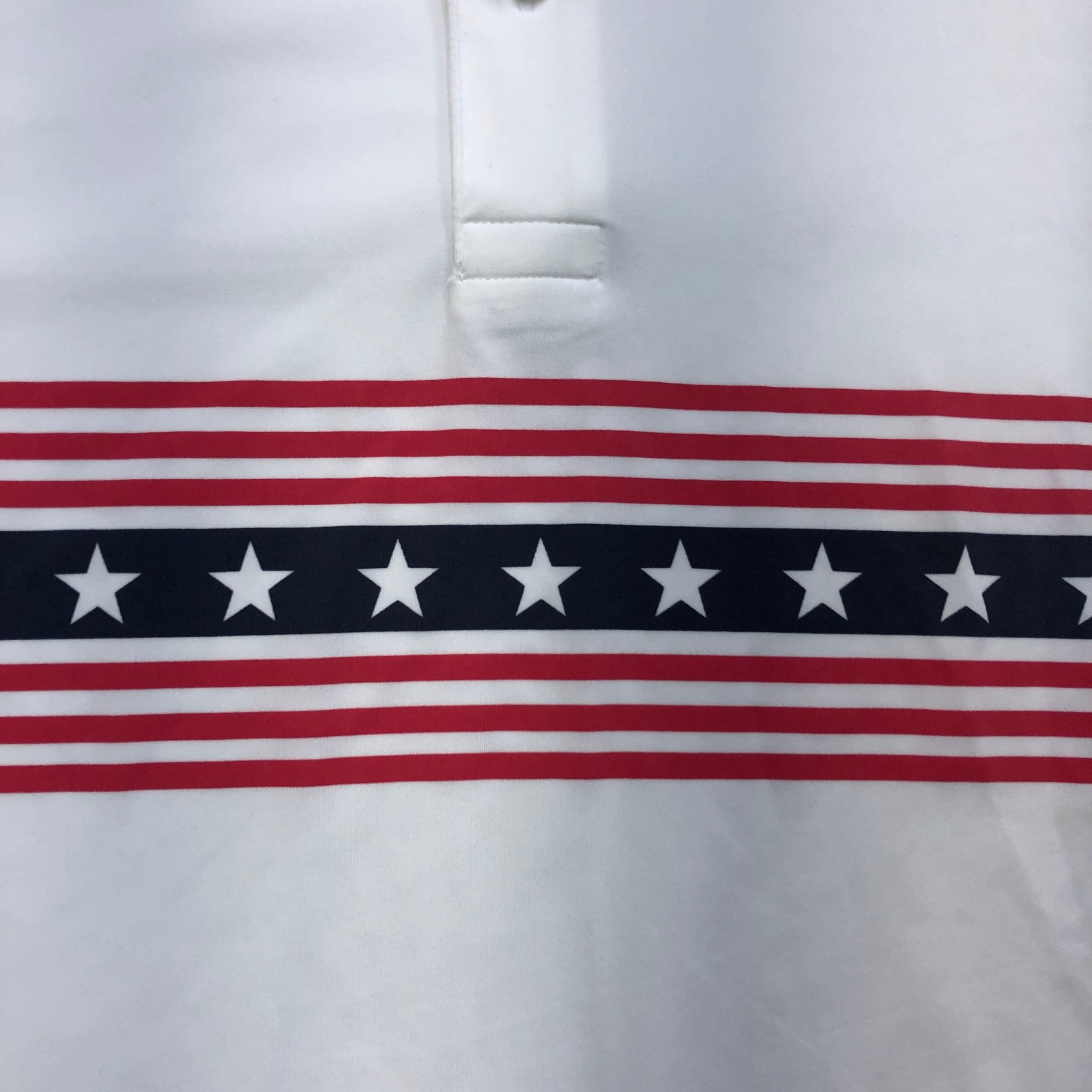 Puma Polo Shirt Mens Medium White Red Blue Stripe Golf Performance Logo Stretch