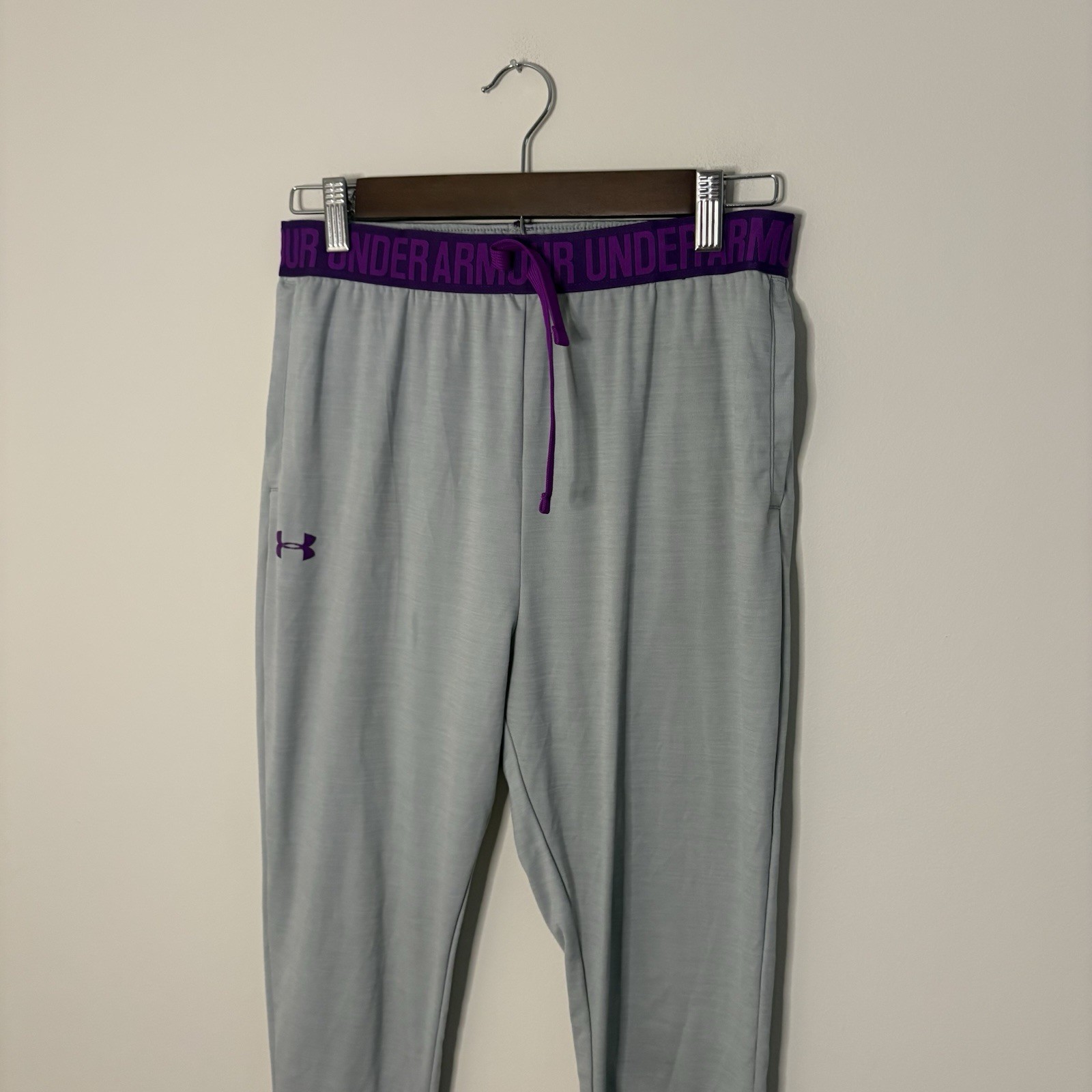 как выглядит Under Armour Youth Large Grey Purple Leggings Base Layer Heatgear R6 фото