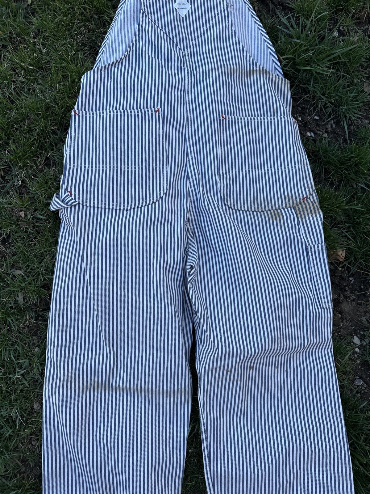 Vintage Big Mac Square Bak Hickory Striped Carpenter Overalls 38x32 Farm Wear