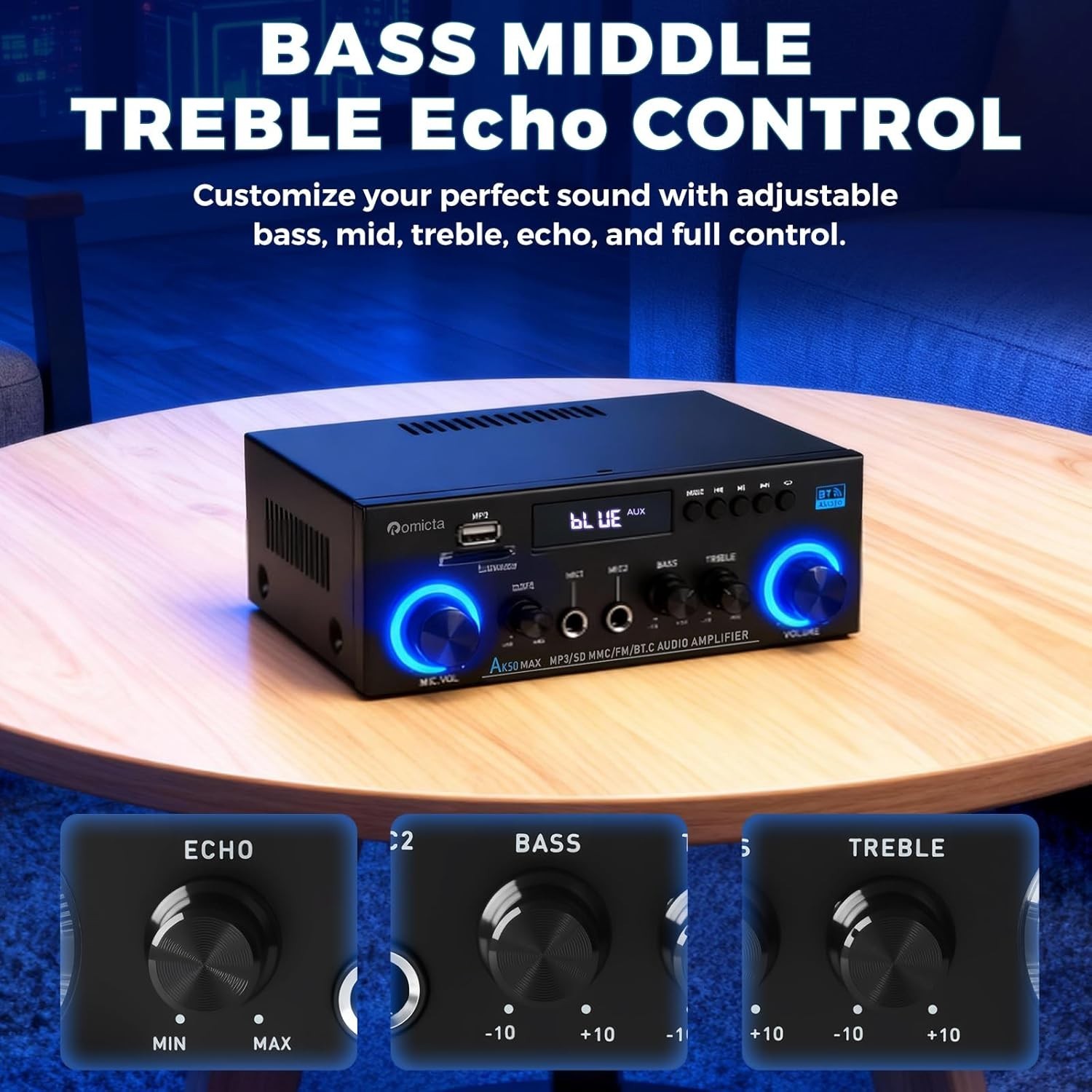 AK45 Stereo Audio Amplifier,300W Home 2 Channel Wireless Bluetooth 5.0 Power ...