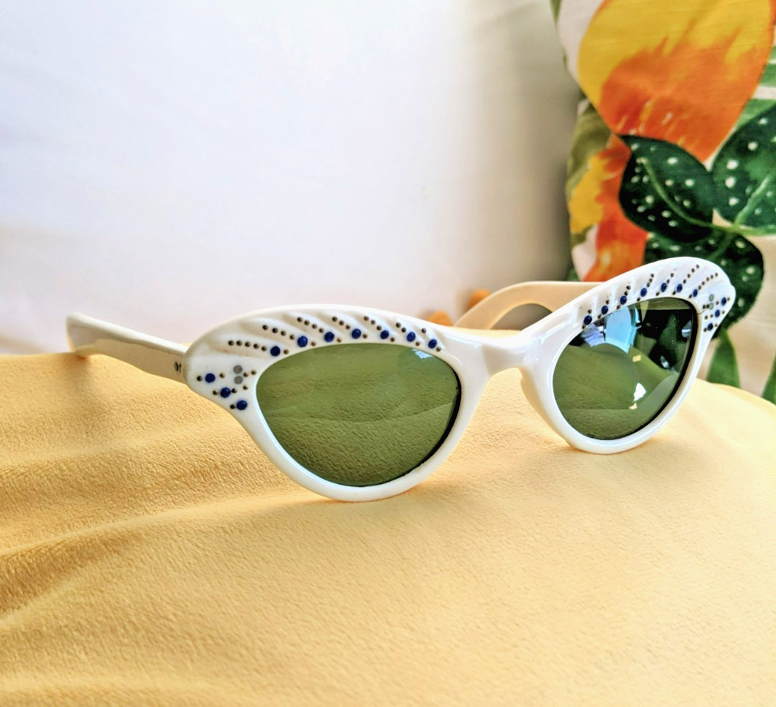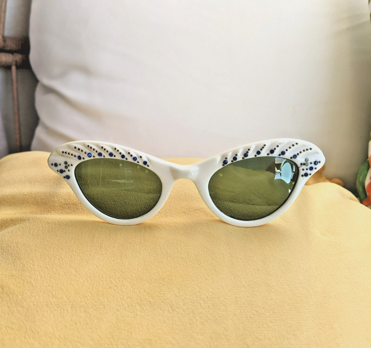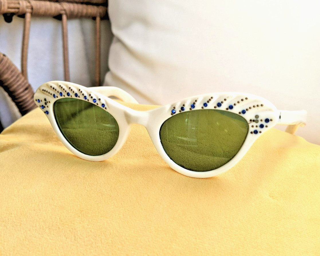VTG Midcentury Retro '50s White Blue Cat Eye Sunglasses Rockabilly SMALL 5.25