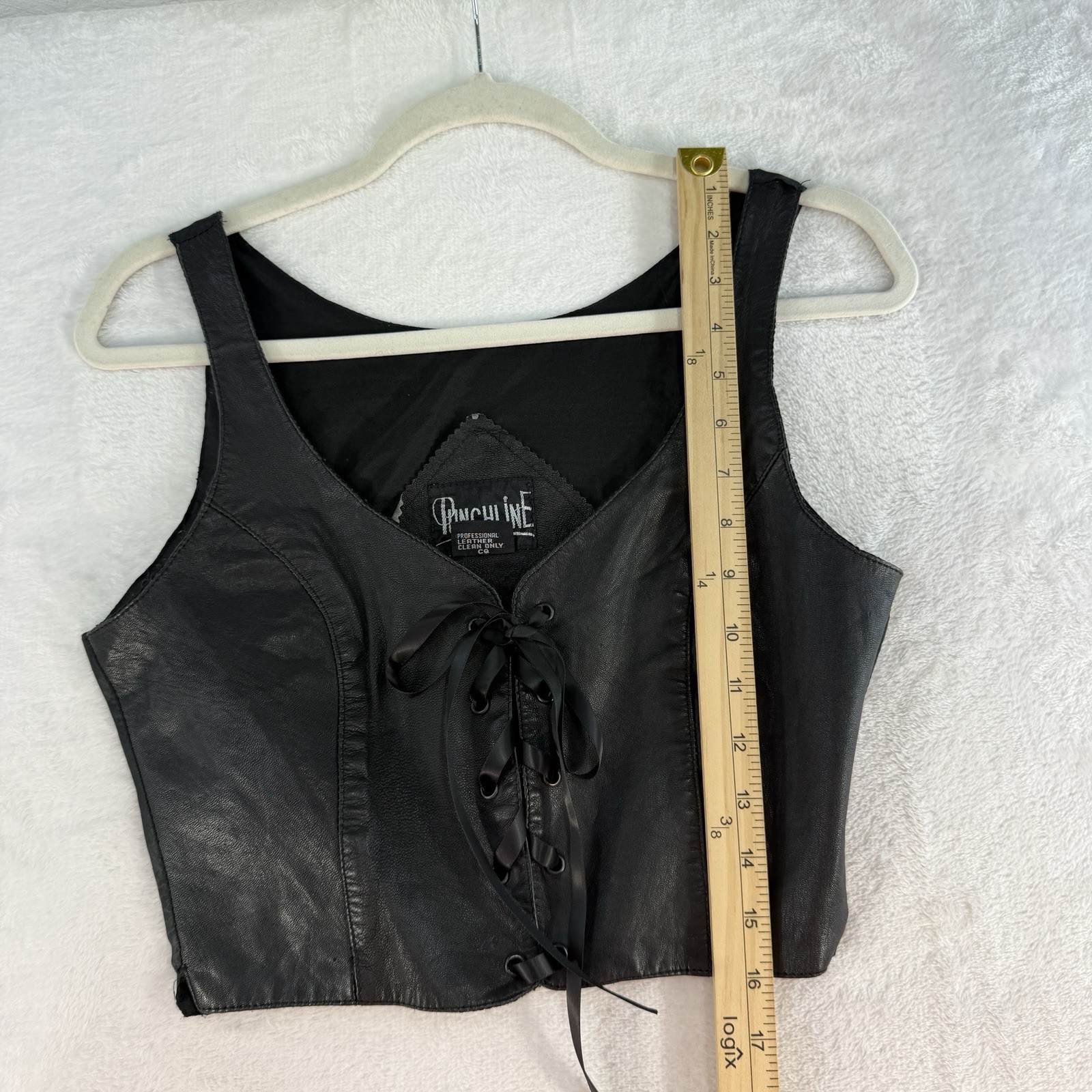 как выглядит Vtg Sm S Black Leather Corset Lace Up Top Biker Festival 90s Whimsigoth Punk фото