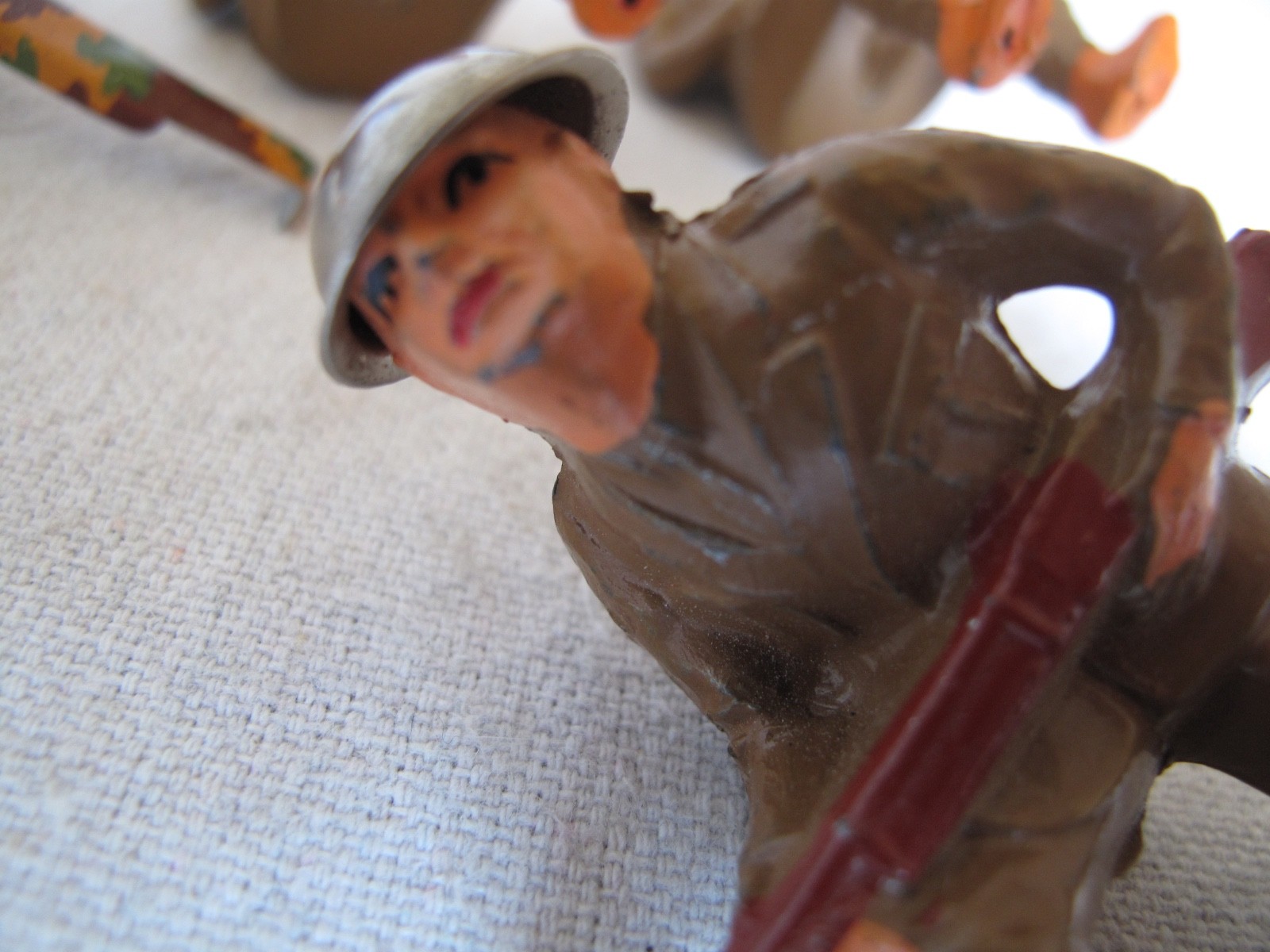 3 Barclay Manoil 1930s Army Lead Toy Soldiers a tin litho Army Cart