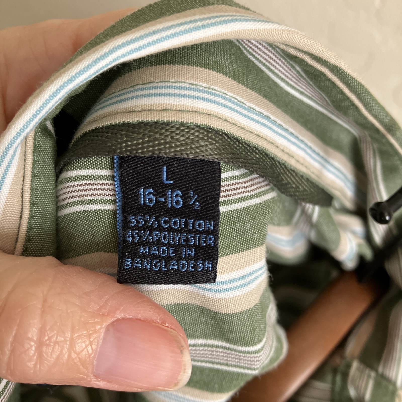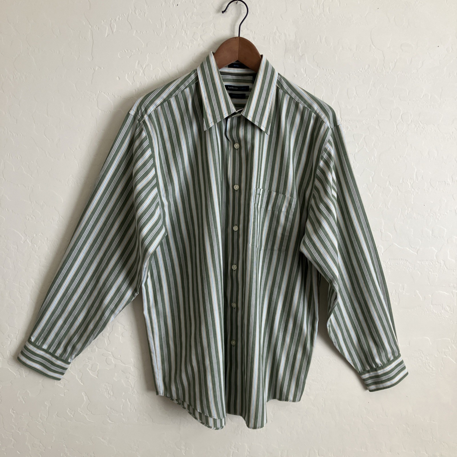 как выглядит Van Heusen Studio Dress Shirt Mens Large 16 Green Striped Button Up Long Sleeve фото