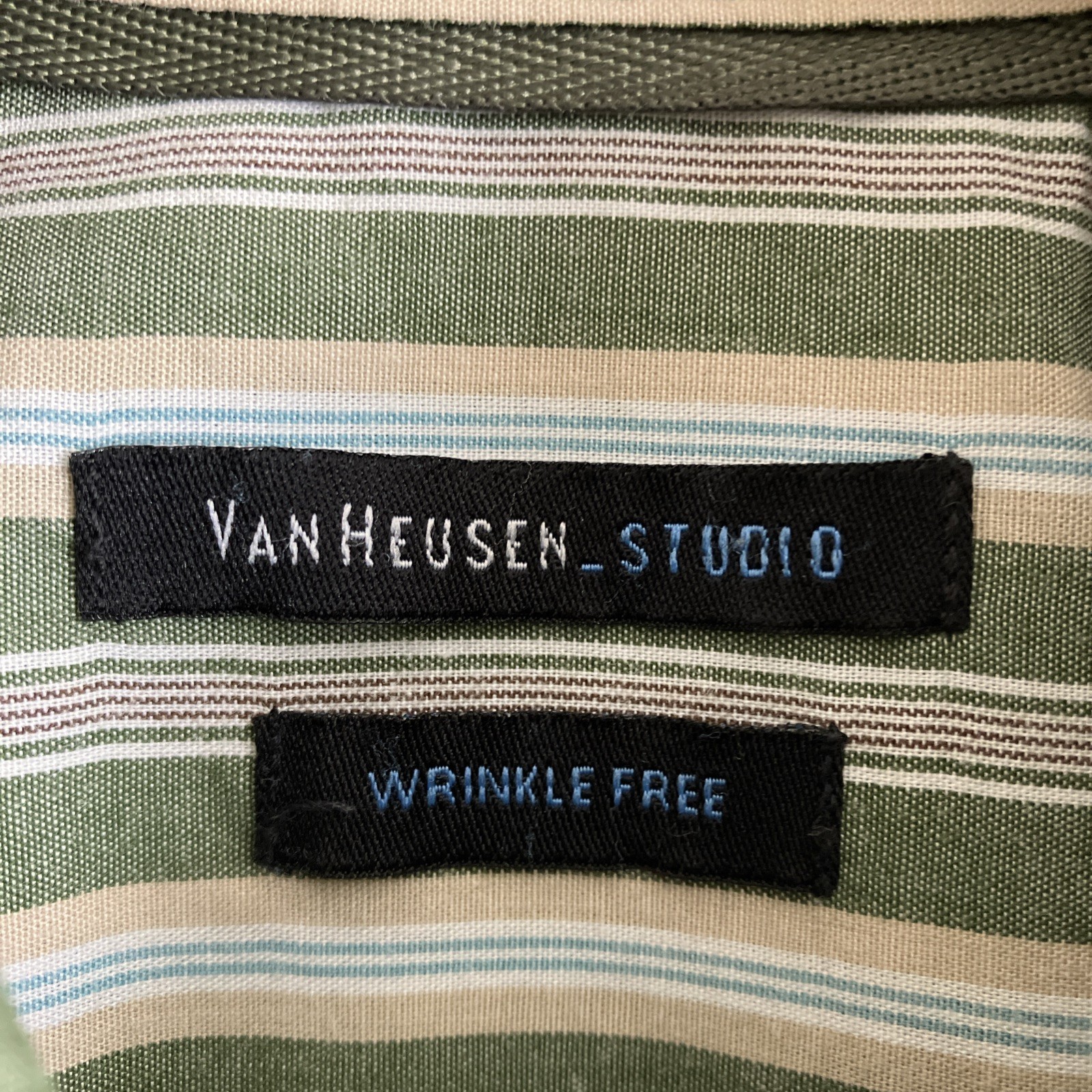 Van Heusen Studio Dress Shirt Mens Large 16 Green Striped Button Up Long Sleeve
