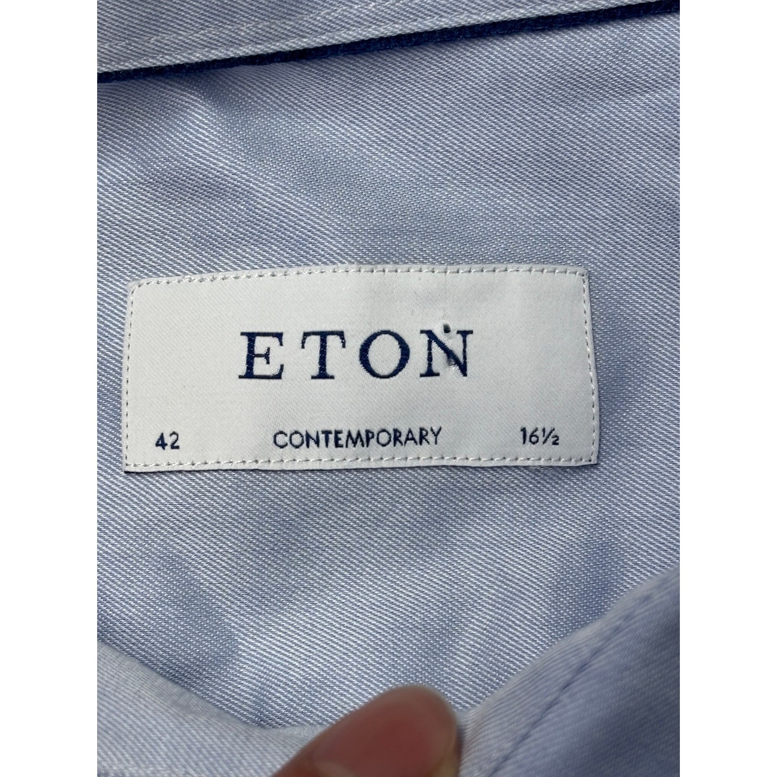 как выглядит Eton Contemporary Fit Dress Shirt Light Blue Cotton Twill Mens 16.5 42 Long фото
