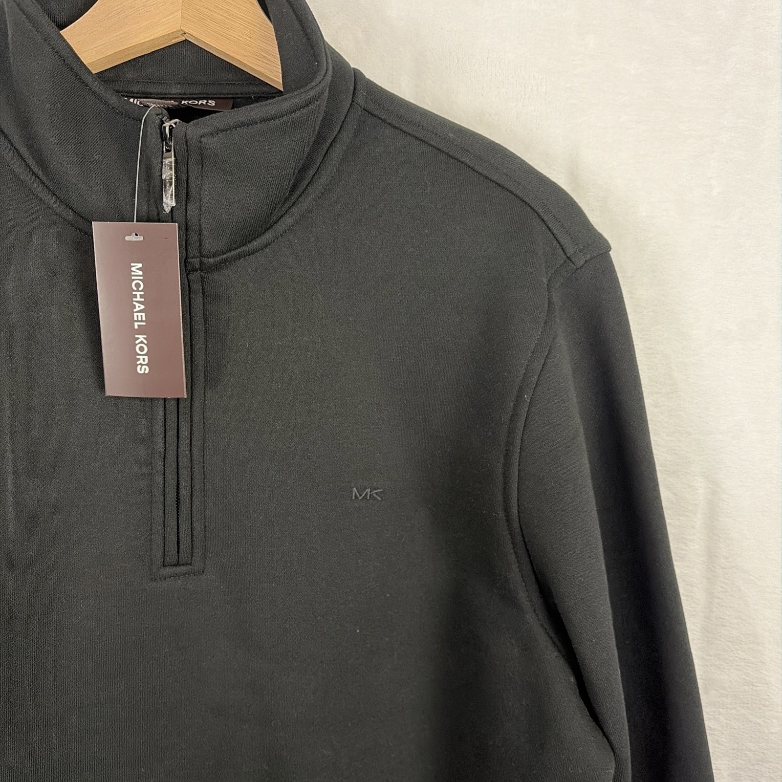 Michael Kors Men's Quarter Zip Pullover Sweatshirt Black Pocket Size Large NWT