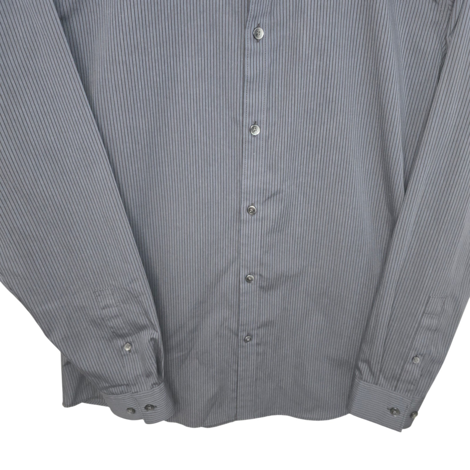 как выглядит Calvin Klein Dress Shirt Mens Medium Gray Striped Button Up Non Iron Slim Fit фото