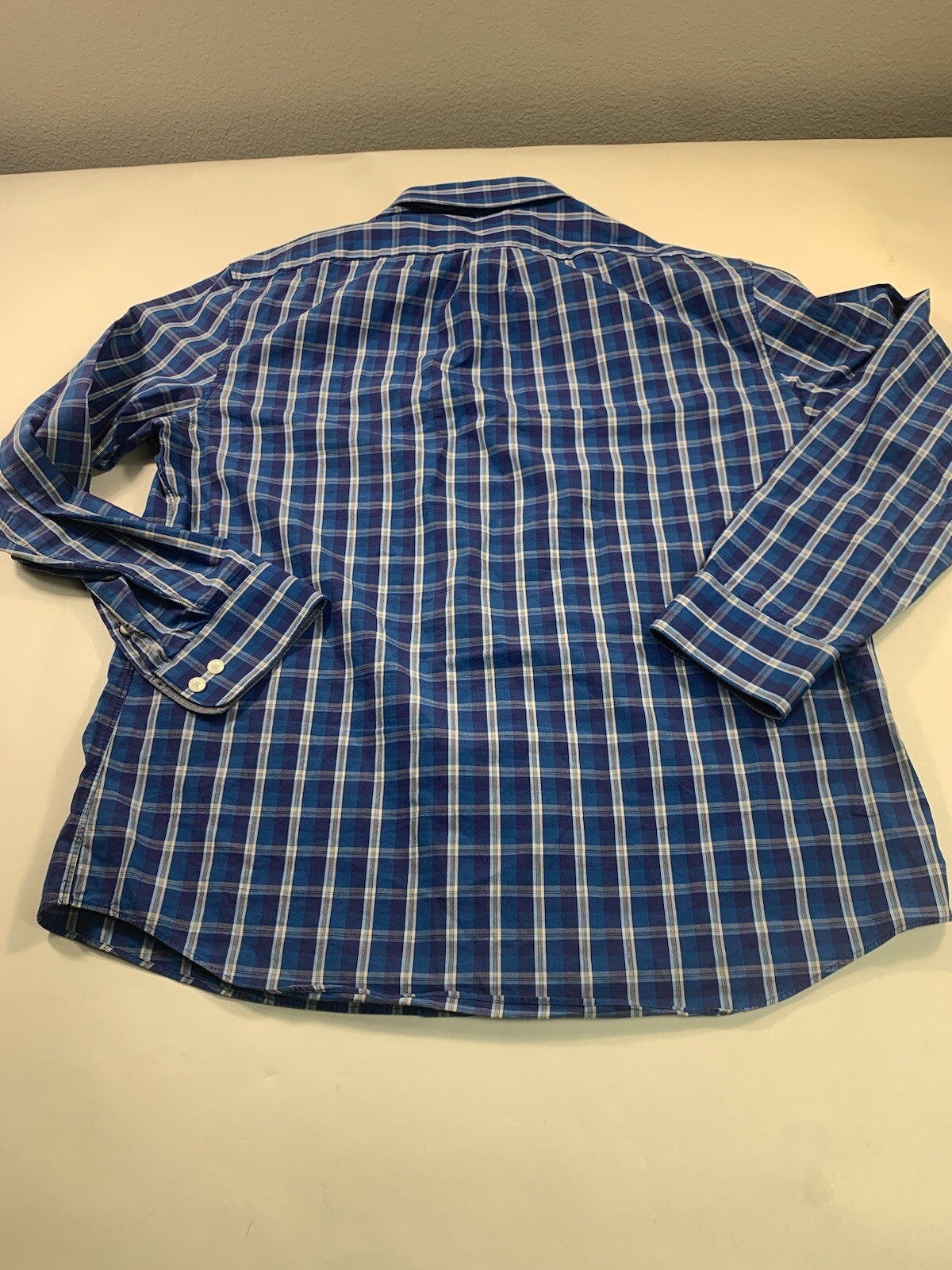 как выглядит Penguin Shirt Mens 16.5-34-35 Plaid Long Sleeve Blue Slim Fit Button Up фото
